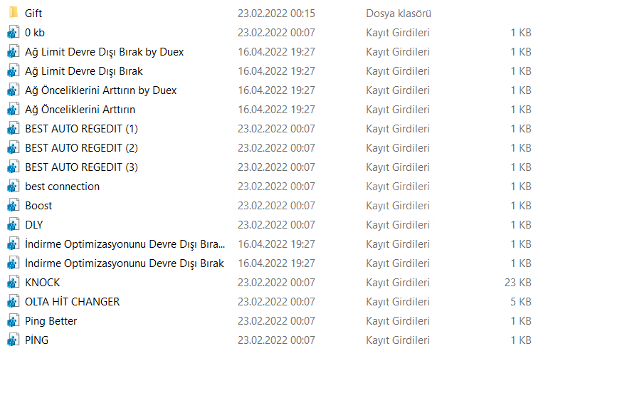 *İçinde 10`dan Fazla Regedit Olan Bir Klasör
