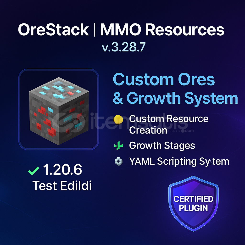 🔥 ORESTACK | MMO RESOURCES – CUSTOM MINING SYSTEM 🔥v3.28.7 – ORİJİNAL, LİSANSLI, %100 GÜVENLİ━━━━━━━━━━━━━━━━━━📌 GENEL TANITIM━━━━━━━━━━━━━━━━━━OreStack, Minecraft sunucularında RPG / ekonomi sistemini güçl...
