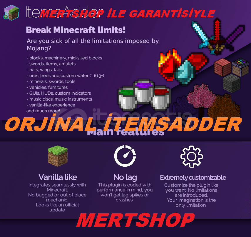 "Ürünün normal fiyatı yaklaşık 700 TL olup, orijinal bir ItemsAdder pluginidir. Sadece plugini satıyoruz; kurulum için destek sağlamıyoruz. 18,42 € (623 TL) gibi bir fiyata, 700 TL değerinde bir ürünü 20 TL’ye alıyorsunuz. Bu nedenle, anlayış göstermenizi rica ederiz."