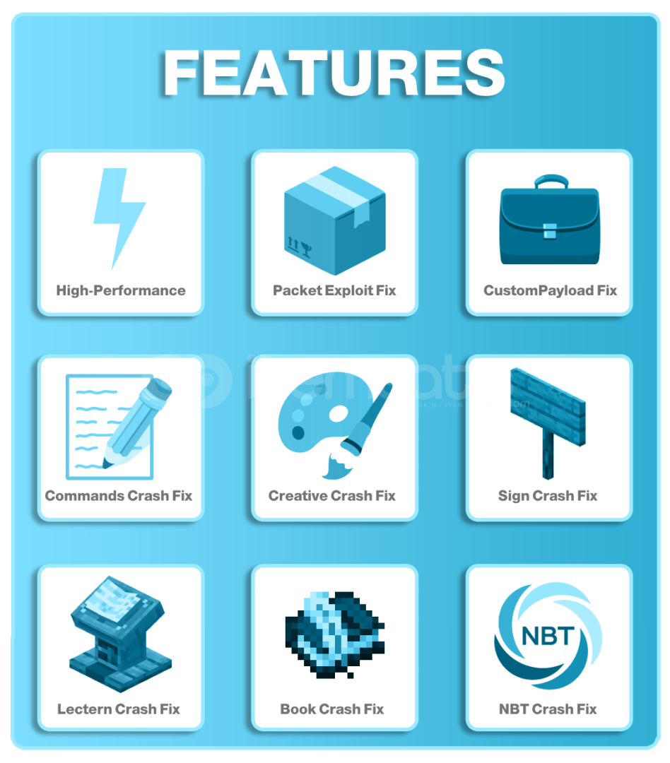 ExploitFixer, Minecraft sunucunuzu oyuncuların kötüye kullanabileceği bug, exploitlerden profesyonel bir güvenlik eklentisidir.🚫 Zararlı paketleri ve bug kullanımlarını engeller⚡ Performans dostu, lag oluşturmaz🔧 Kolay kurulum, anında koruma🛡️ Sunucunuzun güvenliğini üst seviyeye çıkarırSunucunuzun düzenini bozan exploitlere son verin!