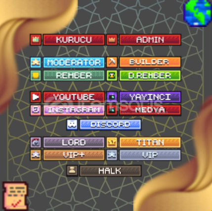 ✅ Paket İçeriği:🔹 Yetkili Rankları: Kurucu, Admin, Moderatör, Builder, Rehber vb.🔹 İçerik Üretici Rankları: YouTube, Yayıncı, Instagram, Medya, Discord🔹 VIP ve Özel Ranklar: Lord, Titan, VIP+, VIP🔹 Halk Rankı: Standart oyuncular için özel ikon🔹 İkonlar: 2 Adet Paket içeriğine uygun ikon görseli bulun...