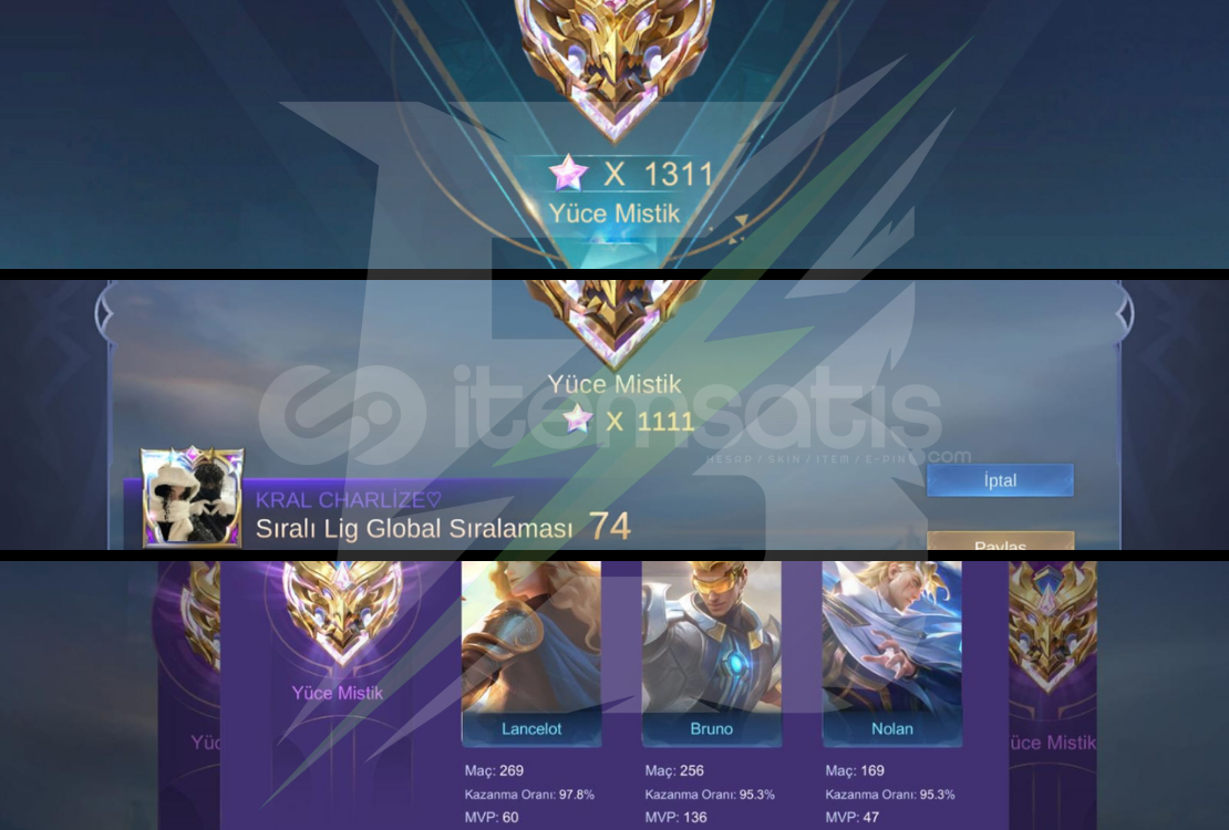 Düşük seviye amblem ve az kahramanlı hesaplar işleme alınmaz.