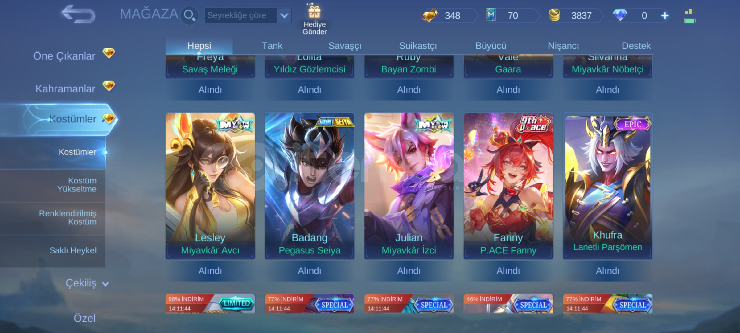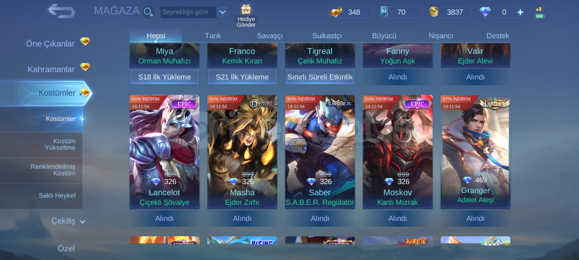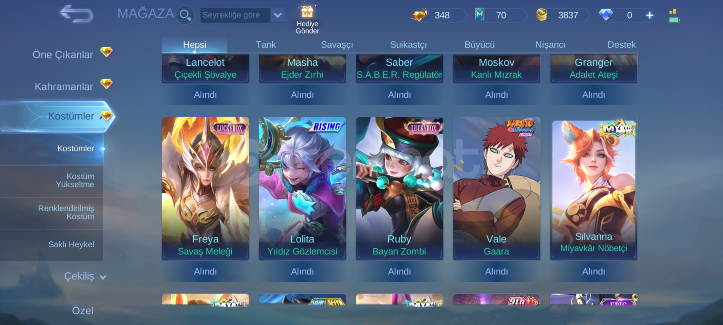 50 HERO 108 KOSTÜMRANK ORANLARI GAYET İDEAL10 SV EKİP ÜZERİNDE5 AMBLEM MAX BU KADAR AZ MAÇA AMBLEMLERİN SEVİYESİ OLDUKÇA İYİDİRTÜM BAĞLANTILAR TEMİZ DİĞER DETAYLARI İÇİN MESAJ ATABİLİRSİNİZ BEKLEME DERDİ YOK MAİL DEĞİŞİMİ YAPILIR
