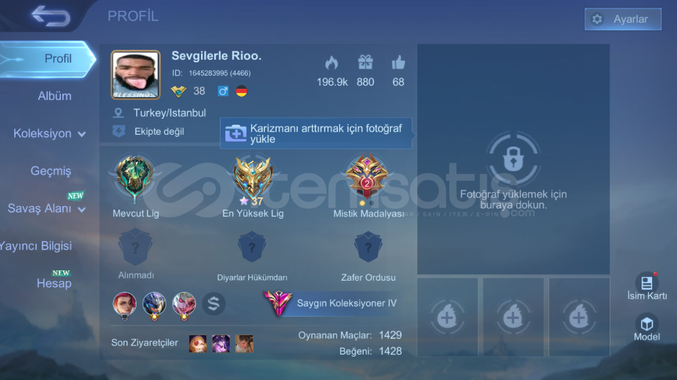 İstanbul No 96 LingTürkiye No 43 ZhuxinToplam 582 Maç %57.39 Kazanma Oranı ve 152 MVPHesap Fotoğraflarda Göründ&u...