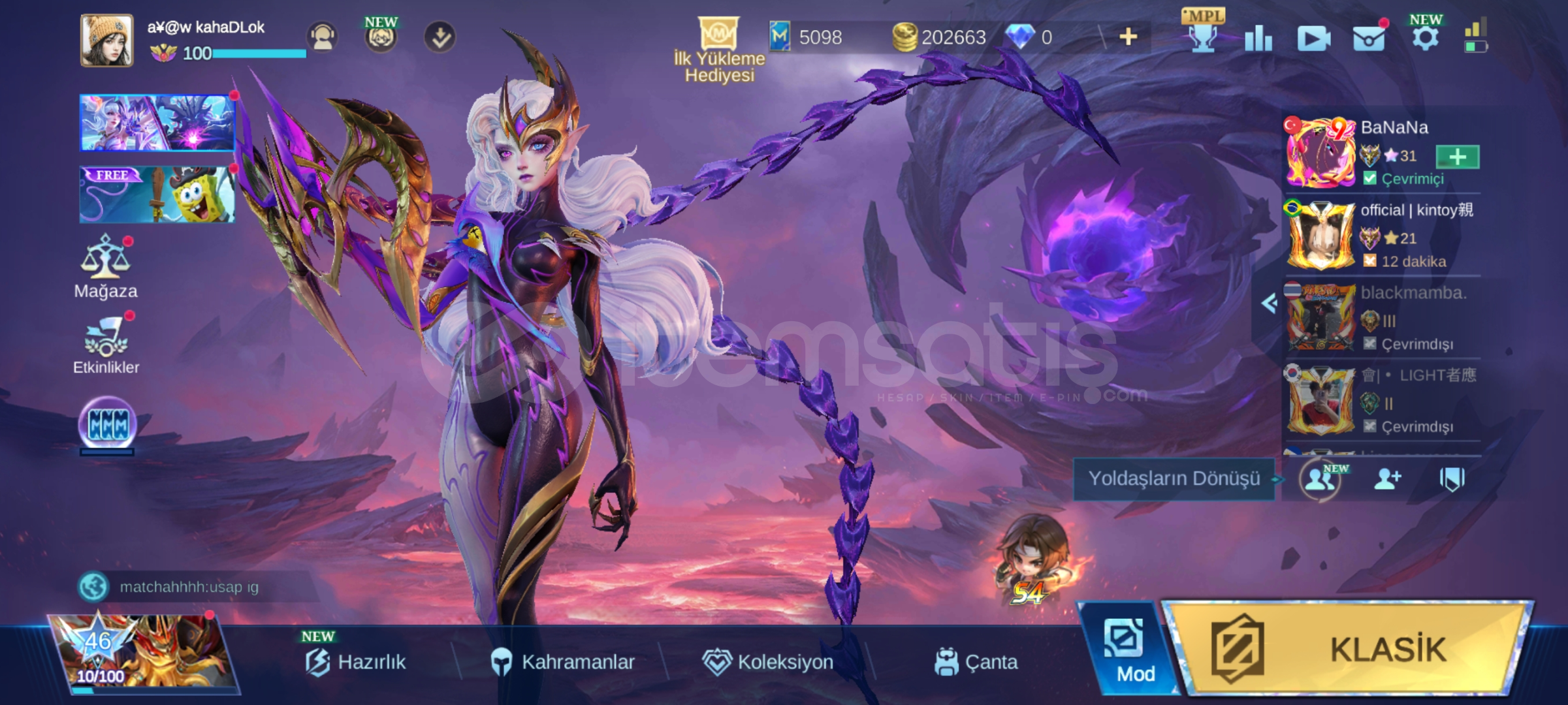 📌 HESAP ÖZELLİKLERİ⭐ Hero Sayısı: 130🎨 Skin Sayısı: 204🛡️ Amblem: Tümü Full Max🔐 Bağlantı: Gmail teslim🎁 Özel & Nadir Kostümler:Collector NataliaEpic LunoxEpic Lou YiBirçok değerli Epic & Special skinDengeli hero + skin portföyü---📌 Hesabın Artıları✨ 129 hero ile geniş ve güçlü havuz✨ 200+ skin biri...