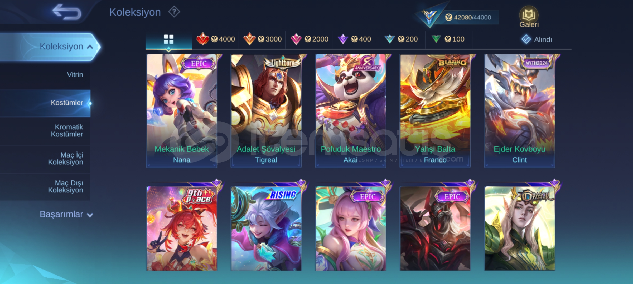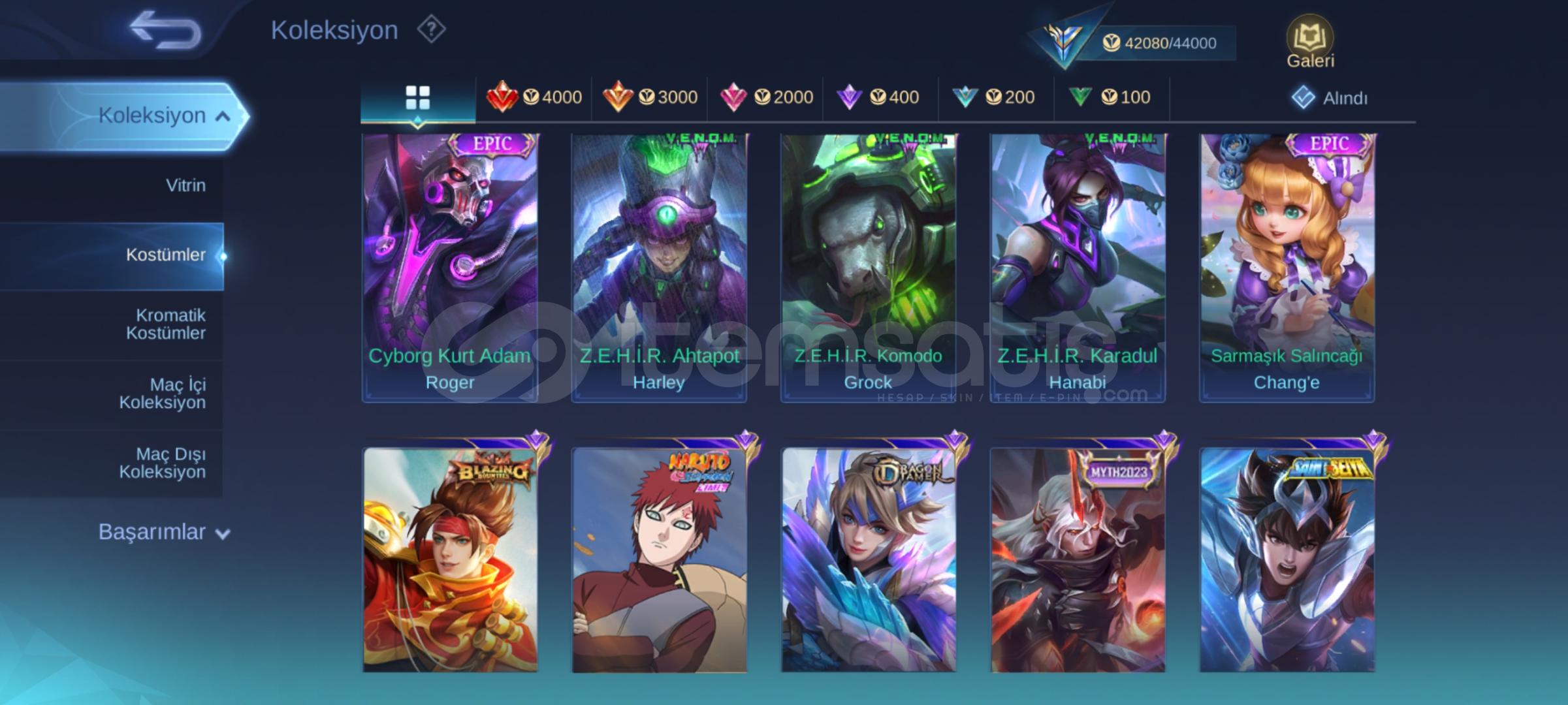 Onlarca Epic, Special ve nadir seri skin