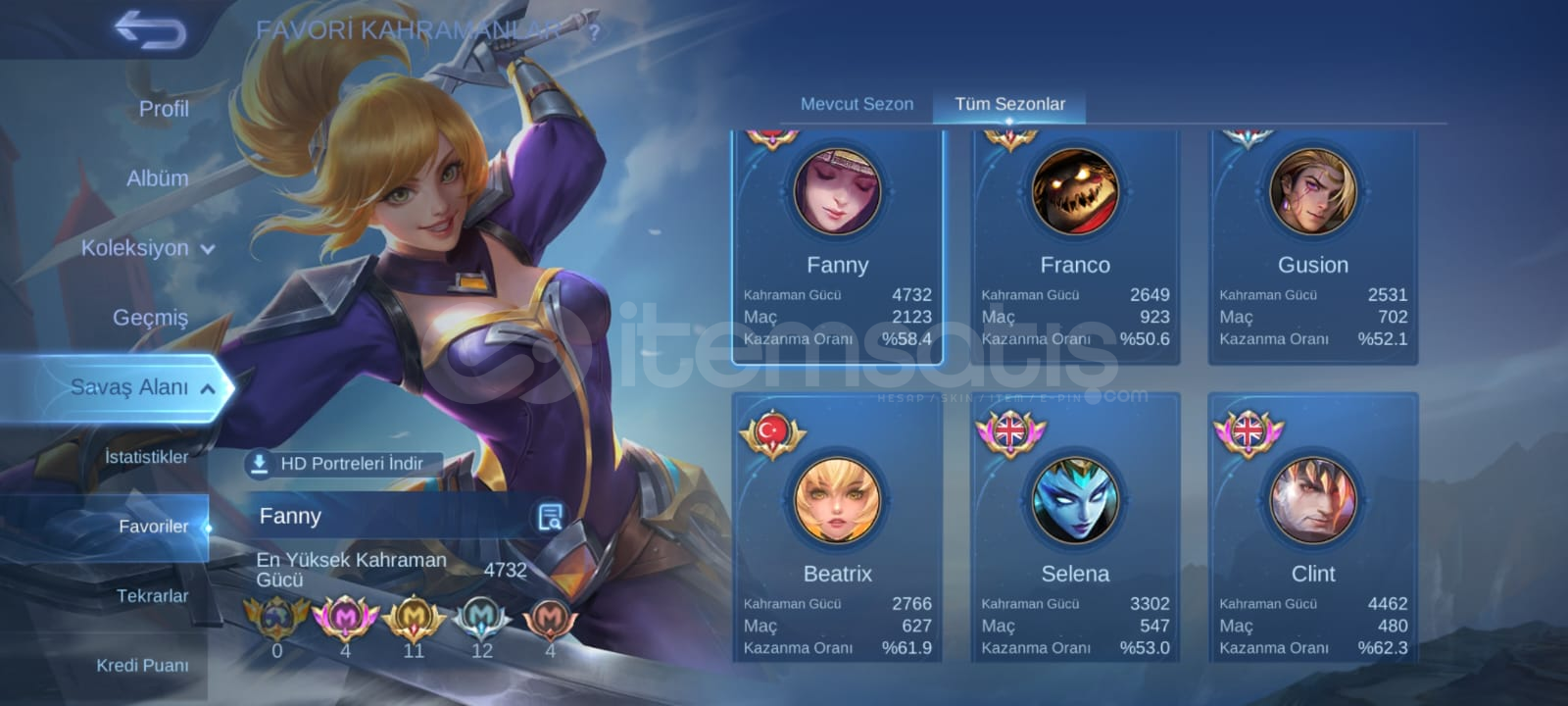 130 HERO 361 KOSTÜM. MAX AMBLEMLER.. MOONTONA BAĞLI OLAN MAİL İLE TESLİM EDİLECEKTİR . SON FİYAT İNDİRİM YOKTUR. TR HESABIDIR. PİYASADAKİ GLOBAL ID HESAPLARLA KARIŞTIRMAYINBEATRİX PRİMEBADANG COLLECTORNATALİA COLLECTOR ROGER LUCKYBOX FANNY LUCKYBOXKARİNA KOFFKAGURA NİLÜFER HAYABUSA DENEY-21LİNG M-WORLDCHOU ECHOSUN LUNAR-FESTFANNY YOĞUN AŞK CLAUDE TUTKULU AŞK LANCELOT ZODİA...