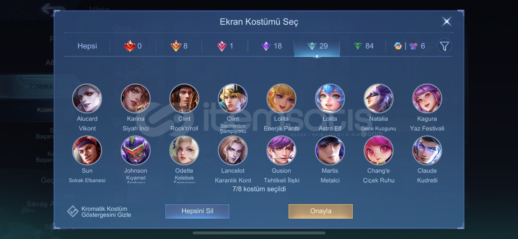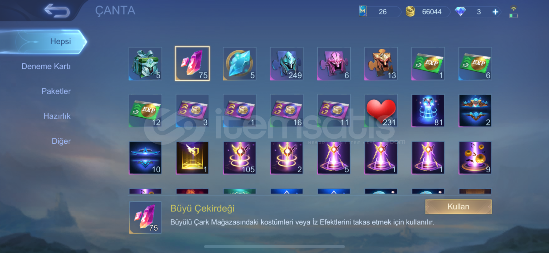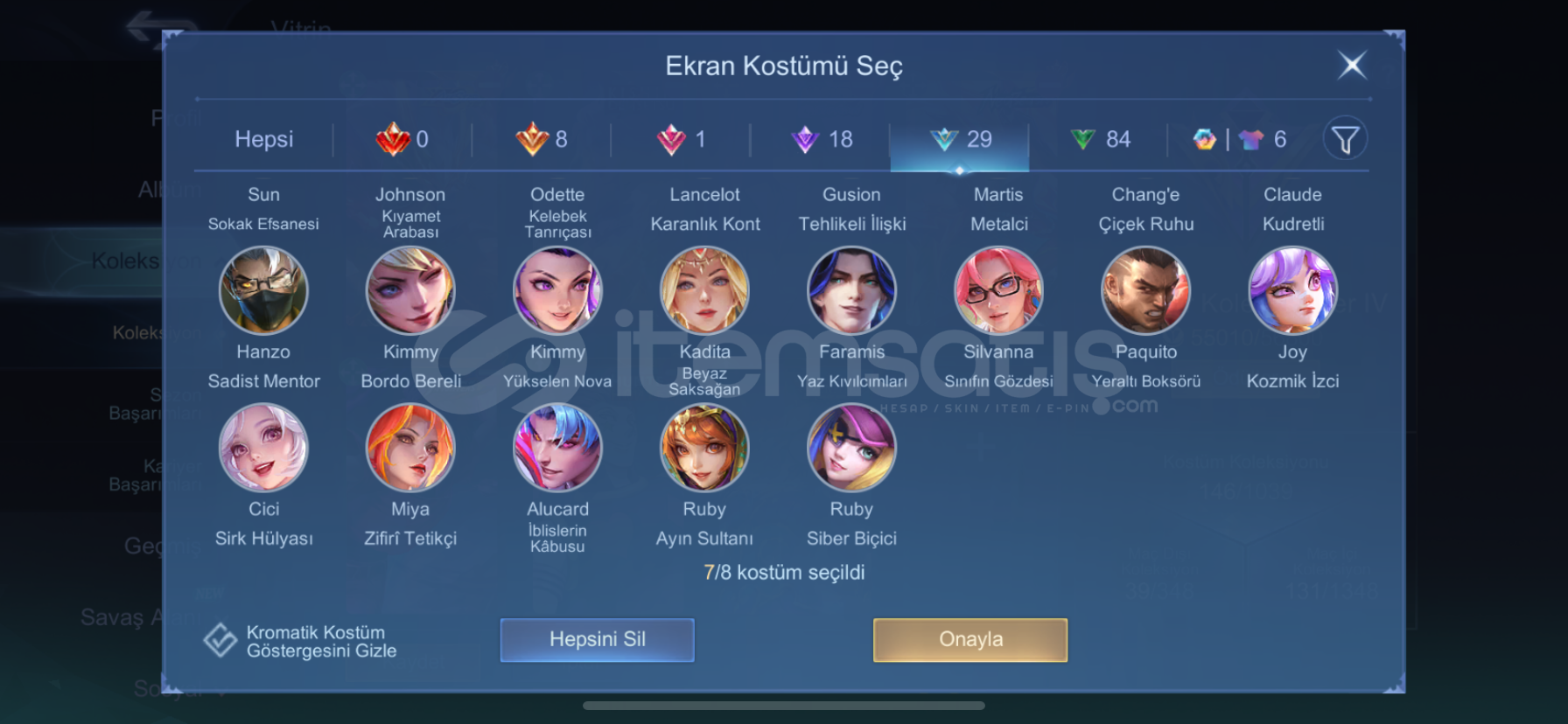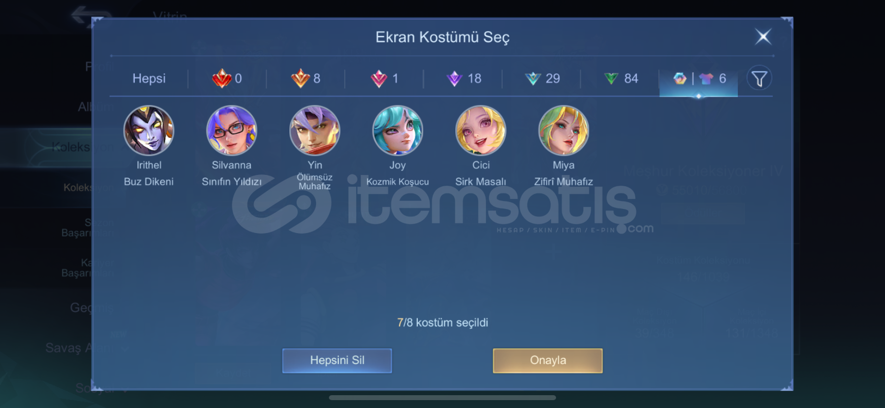 Mobile Legends hesabımı satıyorum.🔹 Toplam Skin: ~146🔹 Nadir / Collab Skinler:Cecillion – HisokaSuyou – Sasuke UchihaLing – NeobeastMoskov – Ejder İblisiLancelot – Tapınak MuhafızıSelena – Kül LanetiKarina – LeonaDyrroth – Orochi Chris🔹 Rank Geçmişi: En yüksek 68 yıldız🔹 Hesap eski, emek verilmiş ve koleksiyon değeri yüksek🔹 Ban...