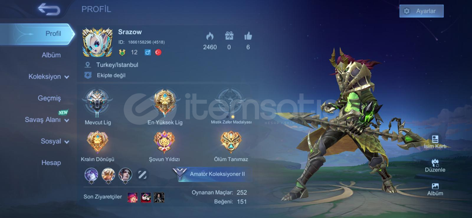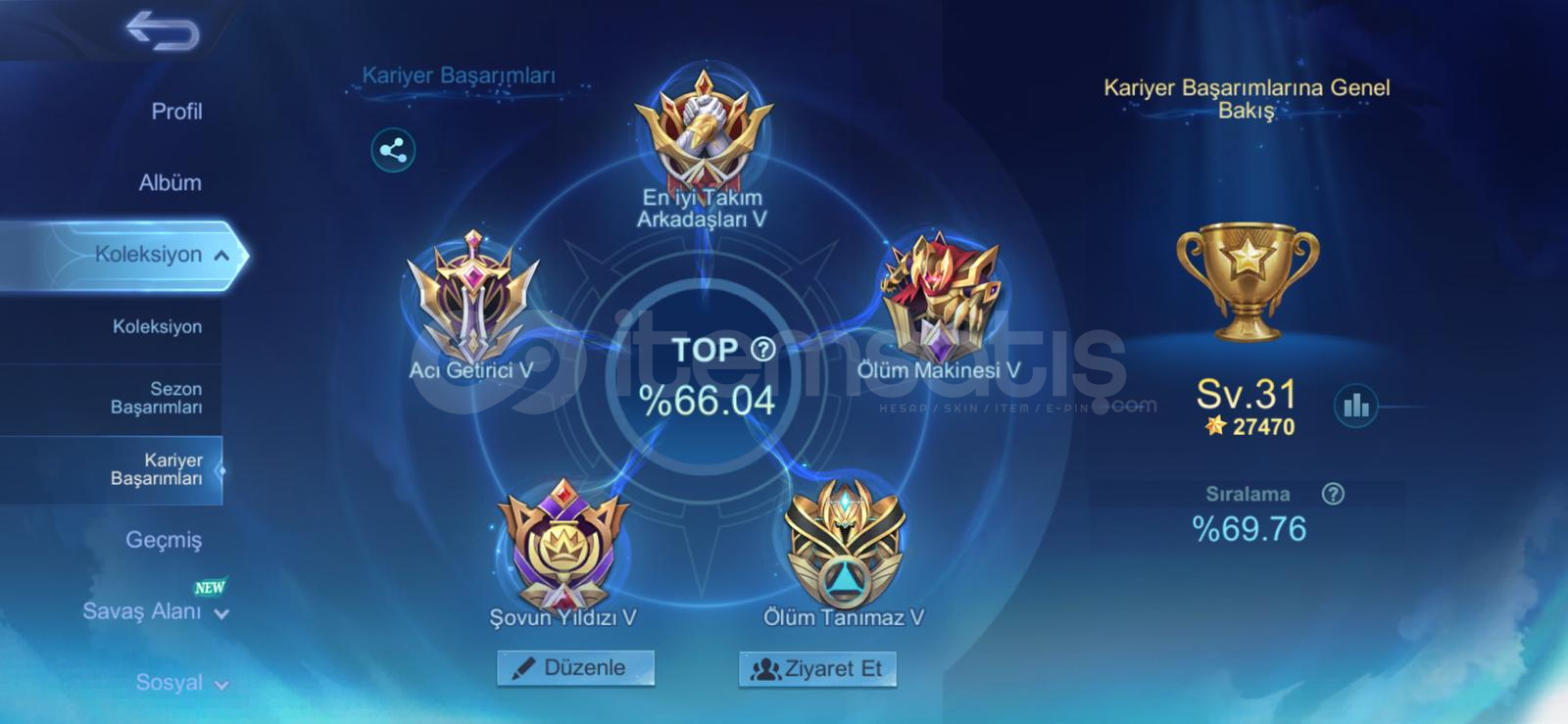 hesabın rankı güncel olarak büyük usta 2 en fazla efsane ligine çıkmıştır mail degişir hesapya 29874 savaş puanı vardır 20 elmas 2606 bilet var indirim mevcuttur