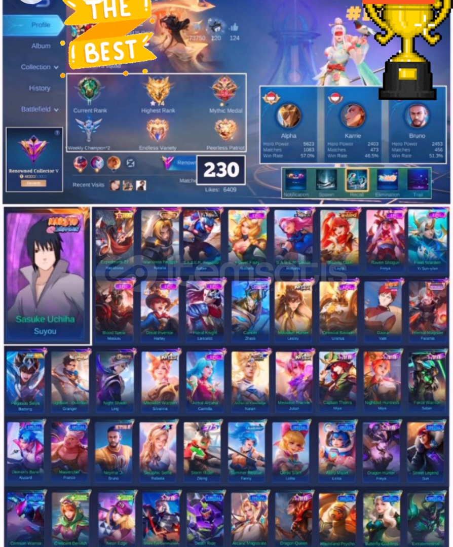 Mobile Legends tutkunlarına özel, üst seviye bir hesap!Tüm amblemler full max, toplamda 230’dan fazla kostüm ve 130+ hero mevcut!İçinde birçok nadir ve koleksiyon kostümü bulunuyor. 🔥✨ Öne Çıkan Kostümler:Naruto SuyouStar HayabusaCollector NataliaSaberBlazing LaylaZodiac ZhaskMystic Lesley, Silvanna, JulianNaruto ValeMyth FaramisSaint BadangLightborn GrangerDragon LingMSC Natan✅ Hesap Bilgileri...