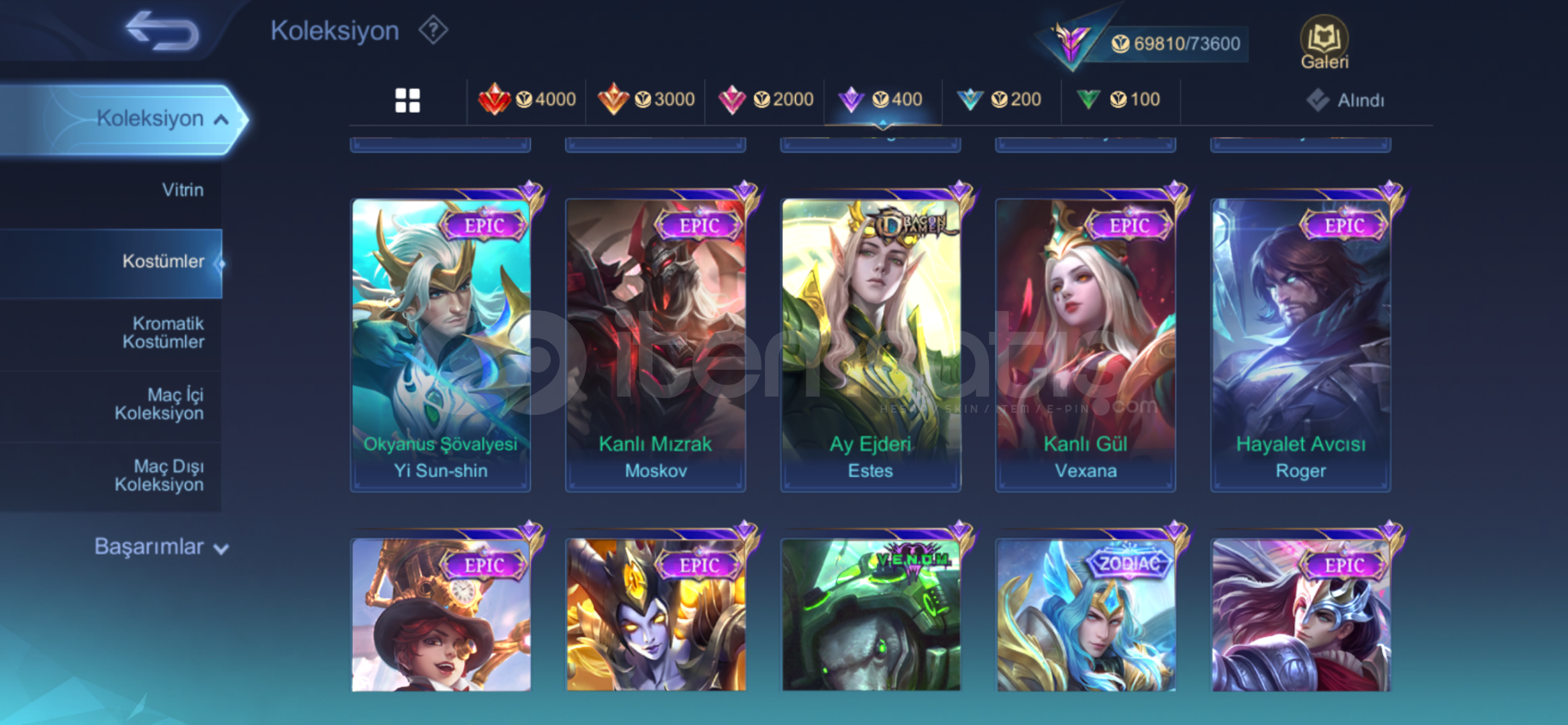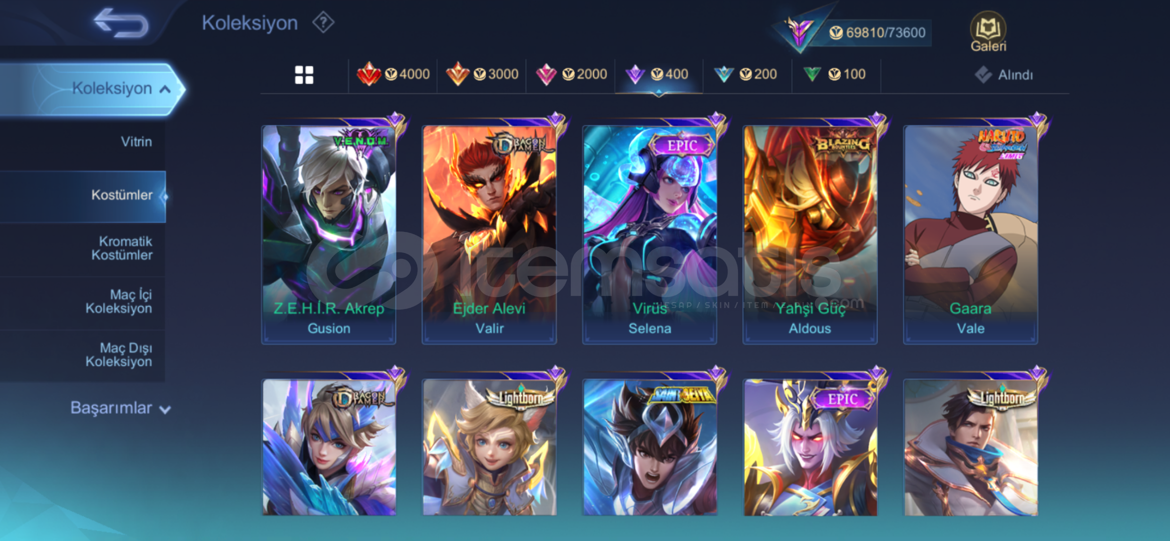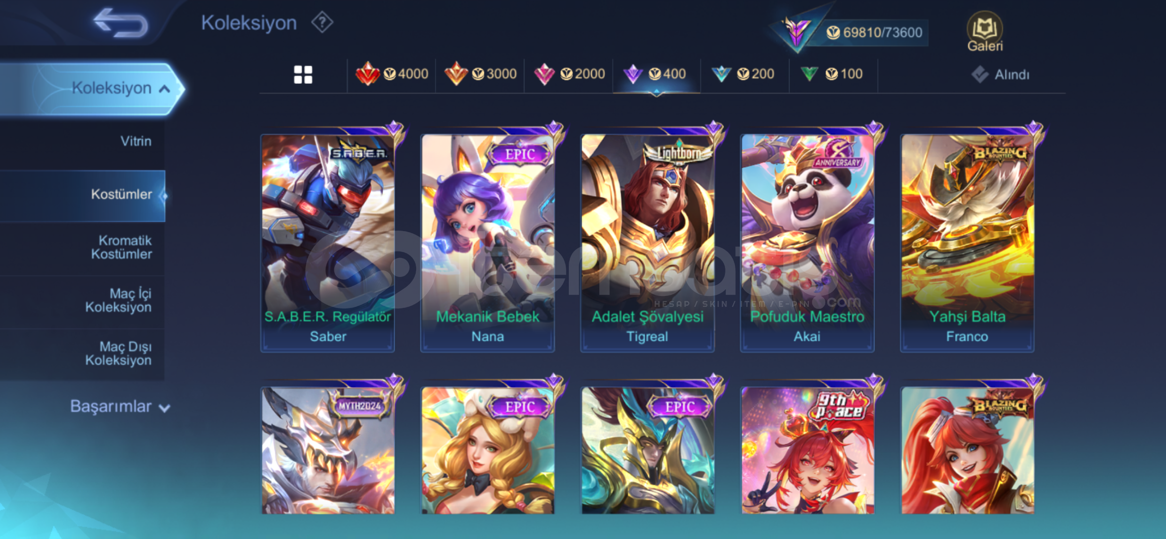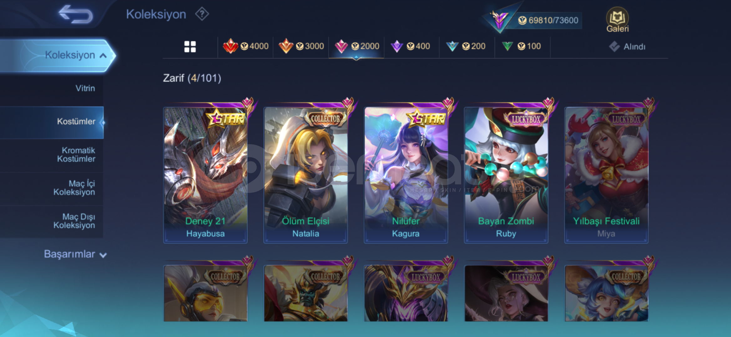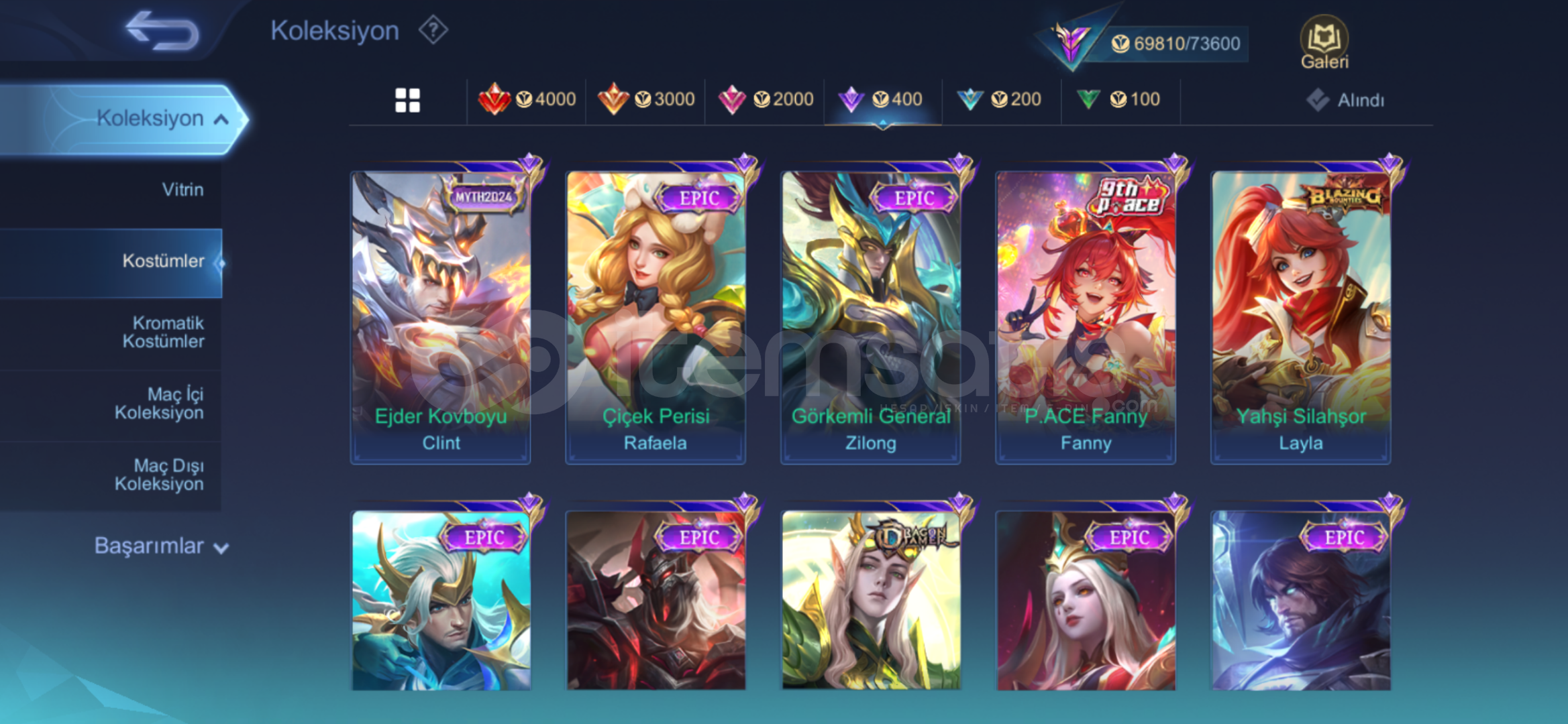 Hesap fotoğraflarda ki gibidir. Amblemler full. 248 kostüm vardır. Max yıldızı 110. Aklınıza takılan bir şey varsa sorabilirsiniz.