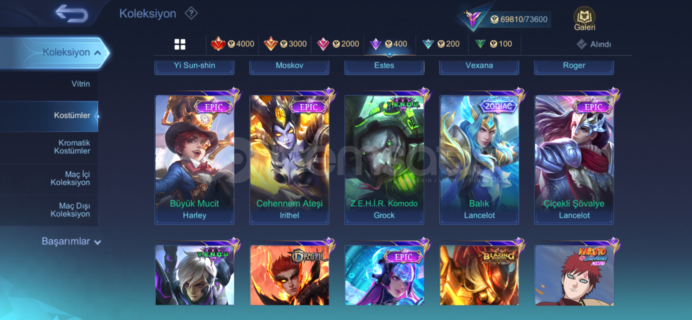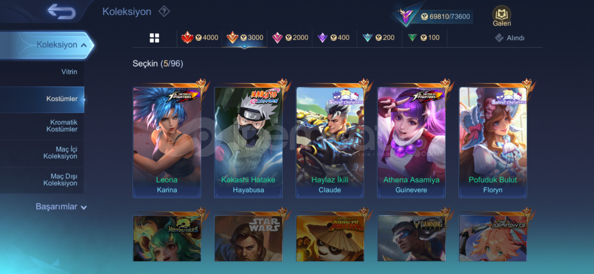 Hesap fotoğraflarda ki gibidir. Amblemler full. 248 kostüm vardır. Max yıldızı 110. Aklınıza takılan bir ...