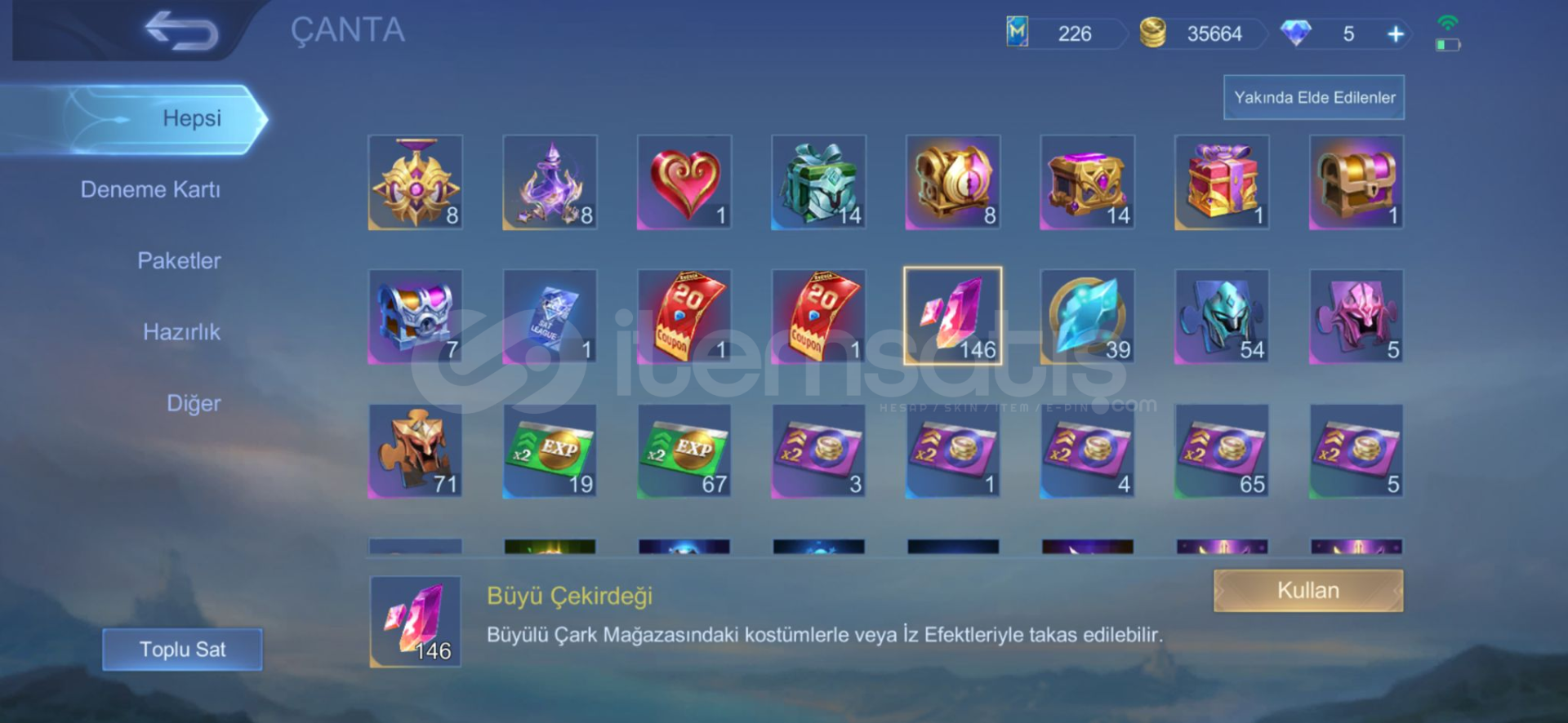 146 BÜYÜ ÇEKİRDEĞİ VARDIR (200 OLDUĞUNDA İSTEDİĞİNİZ LEGEND KOSTÜM ALINABİLİR)