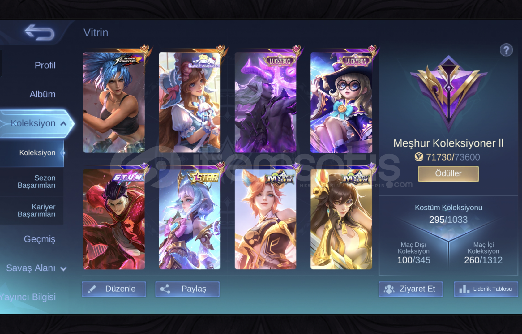 295 kostüm vardır.Hesap mistiktirHESABA GİRİŞ YAPTIĞINIZDA 30 GÜN KORUMA SÜRESİ VERECEKTİRHesap mailinize moonton ile devredilecektir. Global IDdir.Tüm amblemler maxtır.Kredi puanı 109dur130 kahraman2 seçkin4 zarif44 lüks56 fevkaladeSıradan 174