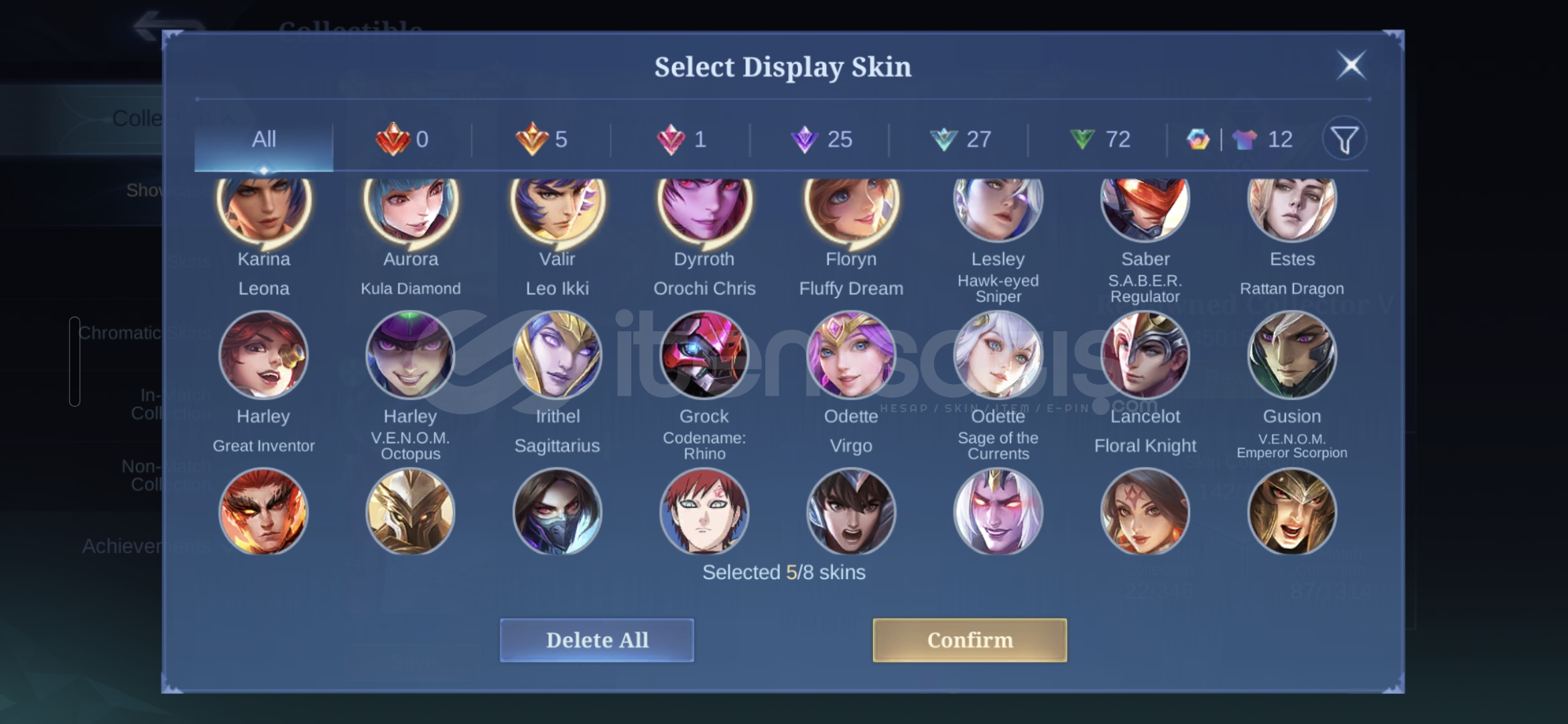 Hesap fotoğraftaki gibidir detayları kaydırarak bakabilir, merak ettiğiniz bir şey olursa sorabilirsiniz.50 Büyülü Taş220 Kristal Parçası (Zodiac almak için)57 Hero142 KostümHesaba zamanında para yatırıldı zaten kostümlere bakabilirsiniz sizin mailinizle değiştirerek teslim ediyorum ölü bağlantı yoktur. Oyunu oynamayı bıraktım zaten maç sayısı...