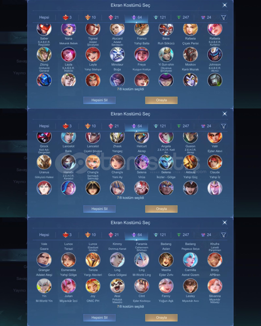 3 LEGENDLİ 21 ZARİF SKİNLİ DOPDOLU BEDAVA MEGA
