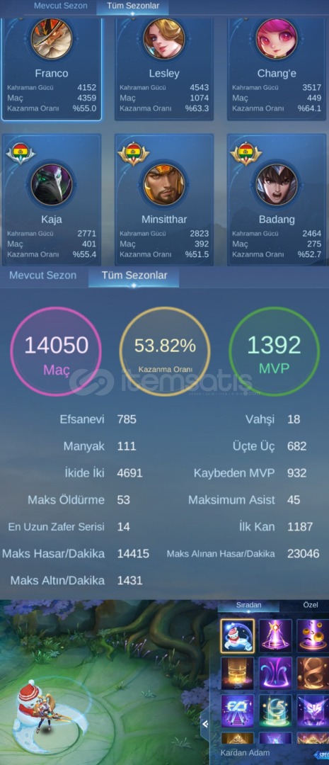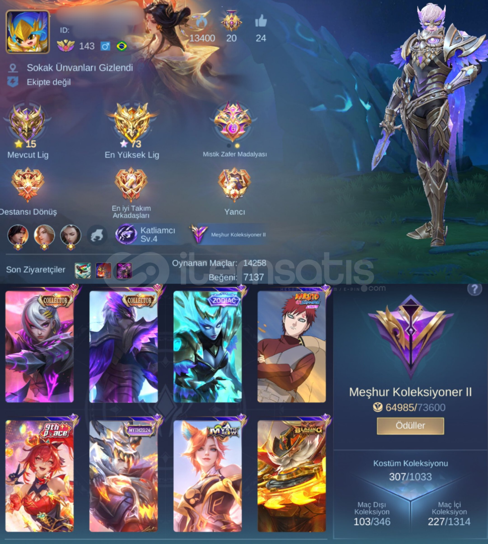 307 Kostüm Gusion Benedetta Kolektör HemenTeslimFranco main 4.3k maçlıSunucu Güney Amerika/Global ElmasBenedetta Kolektör Gusion Kolektör ve daha fazlası Tüm kostümler sste mevcutturFull hero full amblem Büyülü Çark Büyü Çekirdeği 124 Kostüm sayısı 307 Meşhur Koleksiyoner 2 Kardan Adam Üsse IşınlanmaBol EmojiliHesap bağlantısı sadece monton öl&uum...