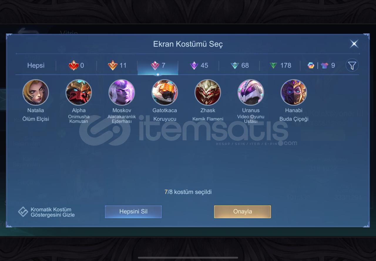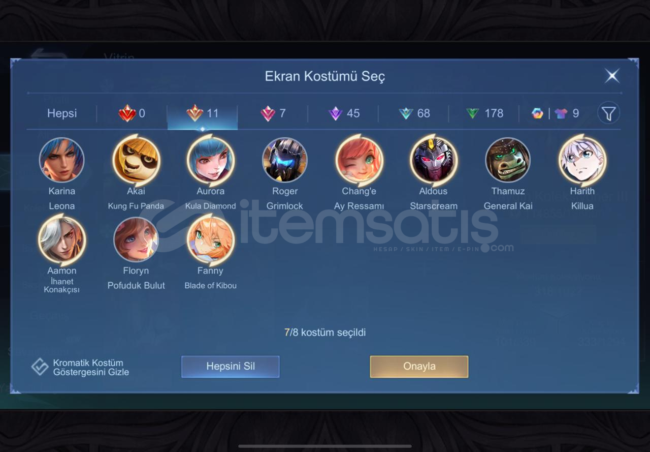 318 kostümlü 114k Koleksionlu dolu efsane hesab