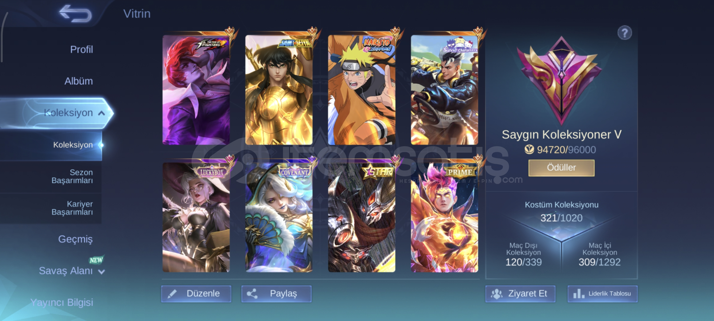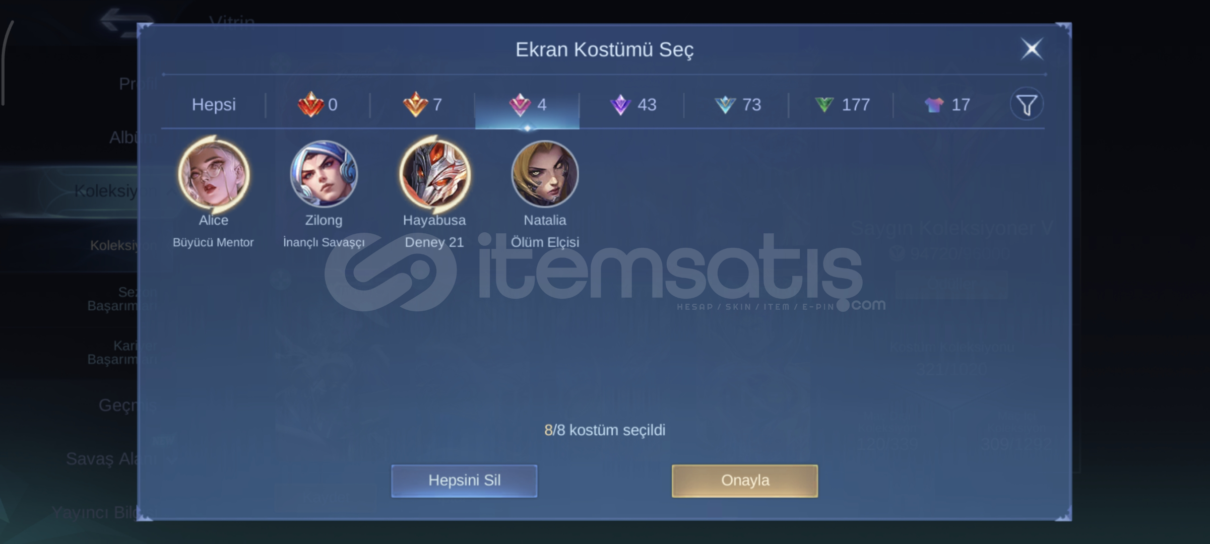 Hesabın bağları temiz 321 skin full hero full amblem 320 elmas 14 günlük elmas gecisi Yıldız üyelik kartı bulunmaktadır