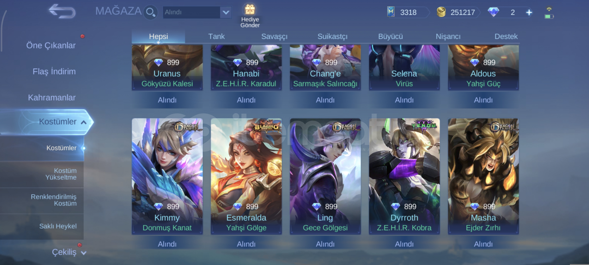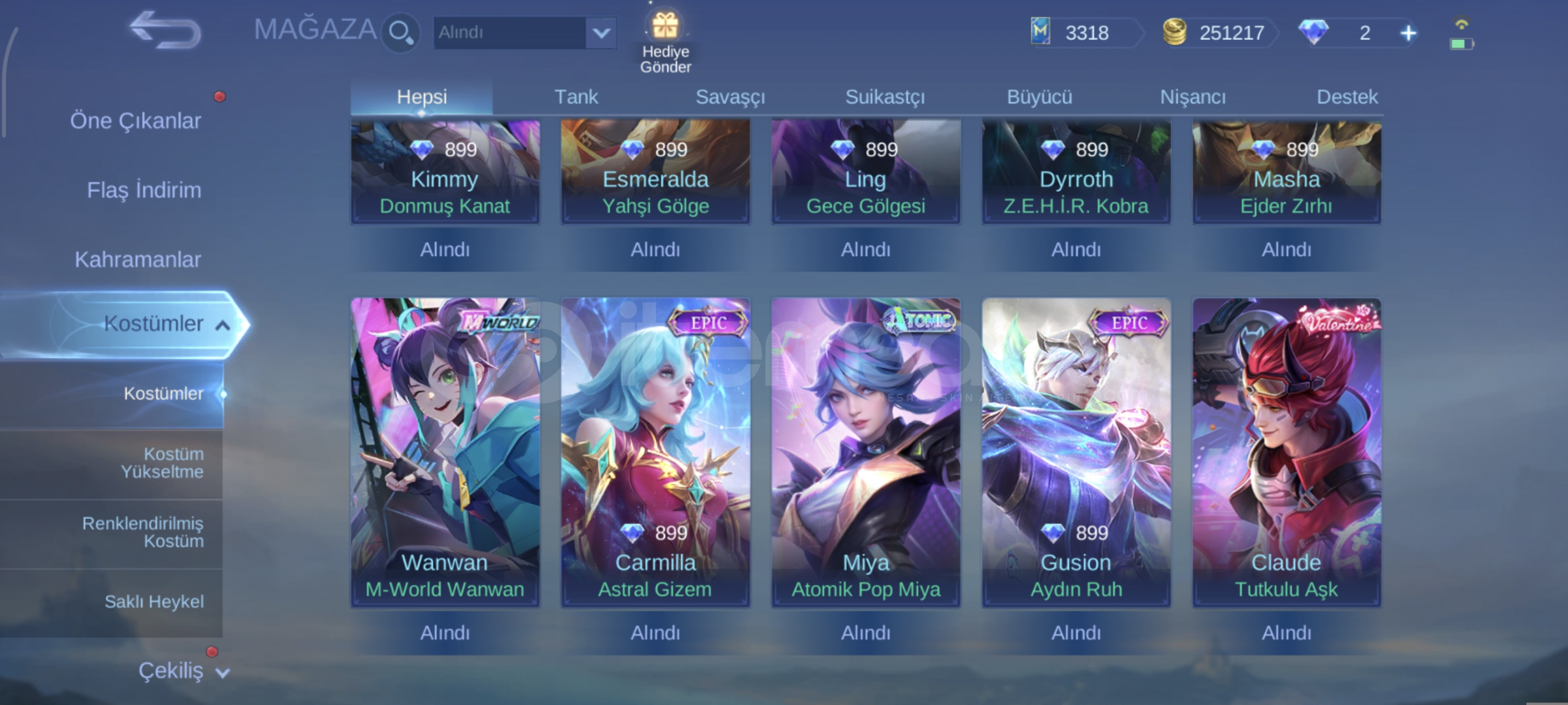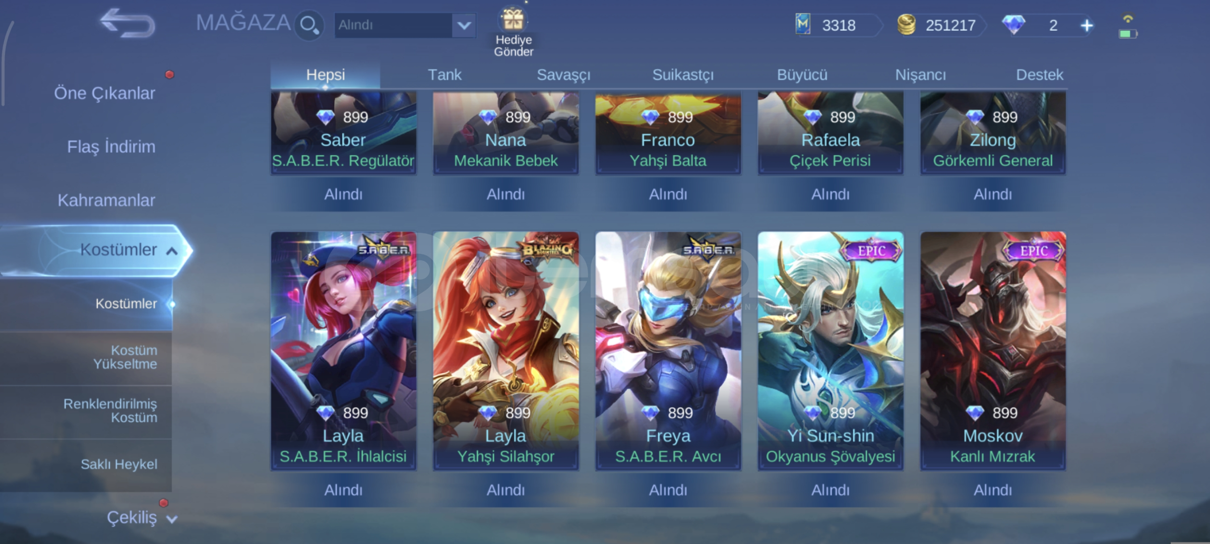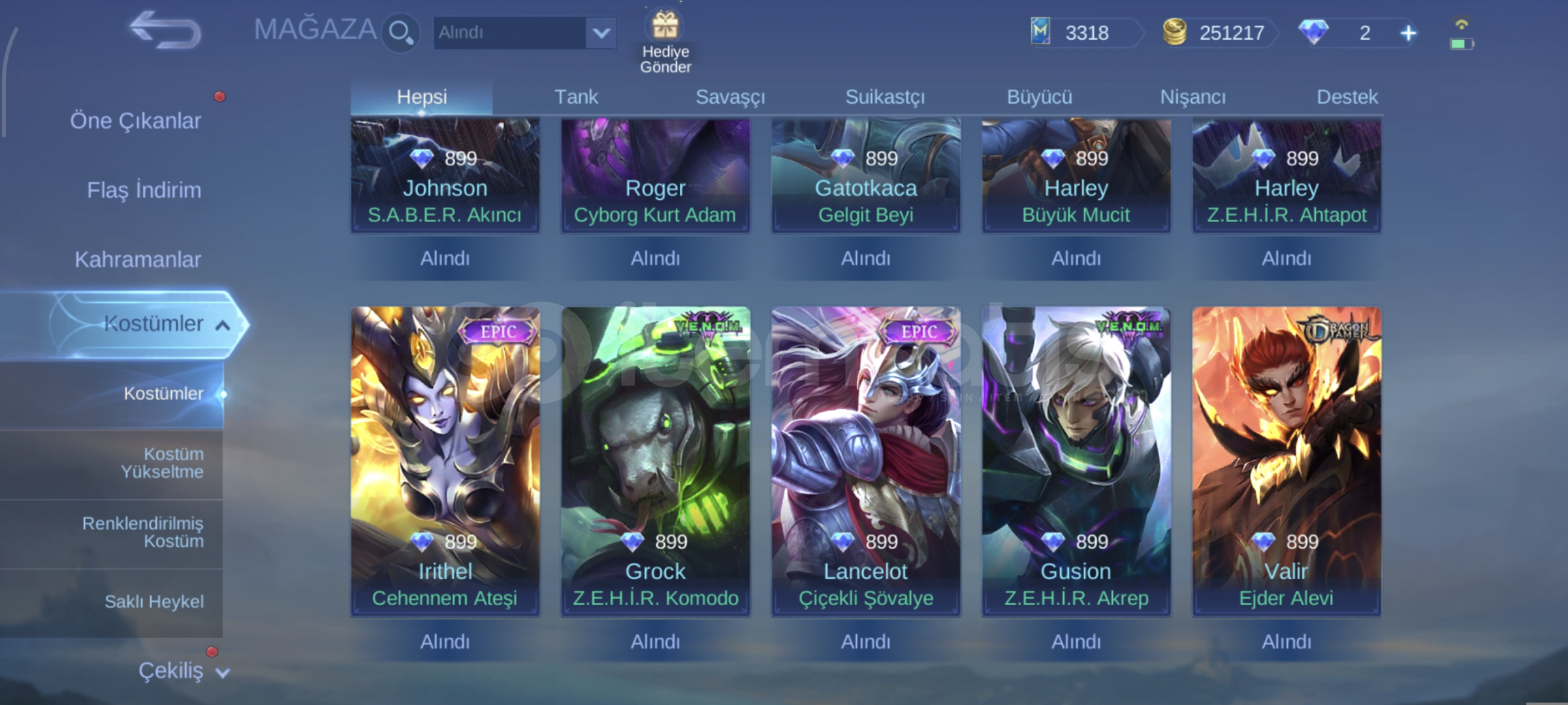 Hesapta tüm herolar açıktır transformers legend prime collector vb.. bolbol epik kostüm isteyene detaylı video atarim