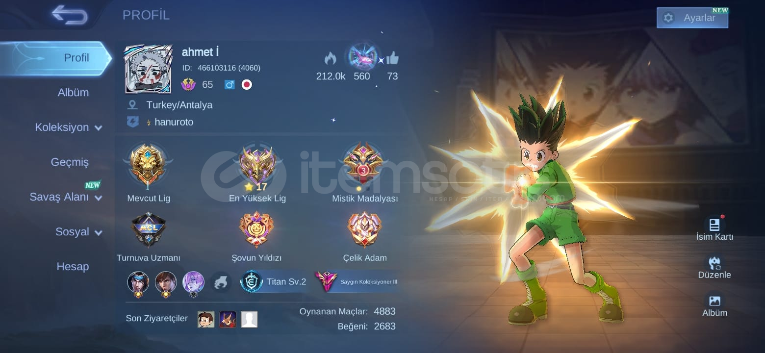 115 HERO 361 KOSTÜM. MAX AMBLEMLER.. MOONTONA BAĞLI OLAN YENİ OLUŞTURDUĞUM GMAİL HESABIM İLE TESLİM EDİLECEKTİR . SON FİYAT İNDİRİM YOKTUR. TR HESABIDIR. PİYASADAKİ GLOBAL ID HESAPLARLA KARIŞTIRMAYIN. HESABA GİRİŞ YAPTIĞINIZDA 30 GÜN KORUMA SÜRESİ VERECEKTİR. GUSİON LEGENDDYROTH HUNTER x HUNTERX-BORG METRO ZEROSELENA ZENITHCHANGE ASPİRANTS CLAUDE PRİMEFLORYN...