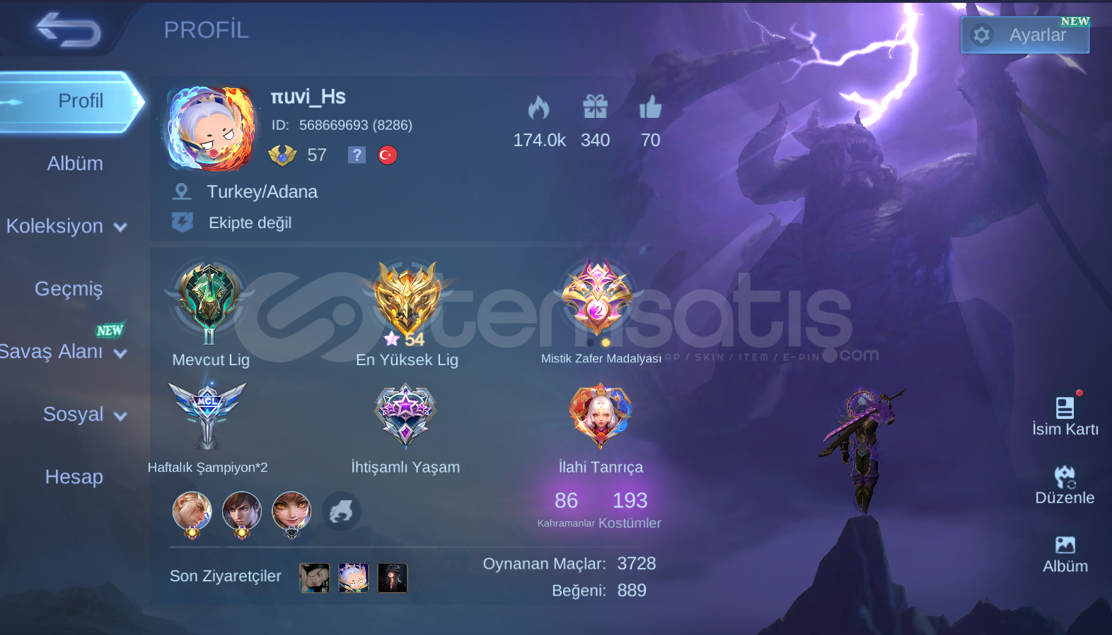 3. Hesap bölgesi Asya veya Global’dir. Daha detaylı bilgi ve elmas fiyatları için ID/Sunucu kontrolü isteyip link alınız.