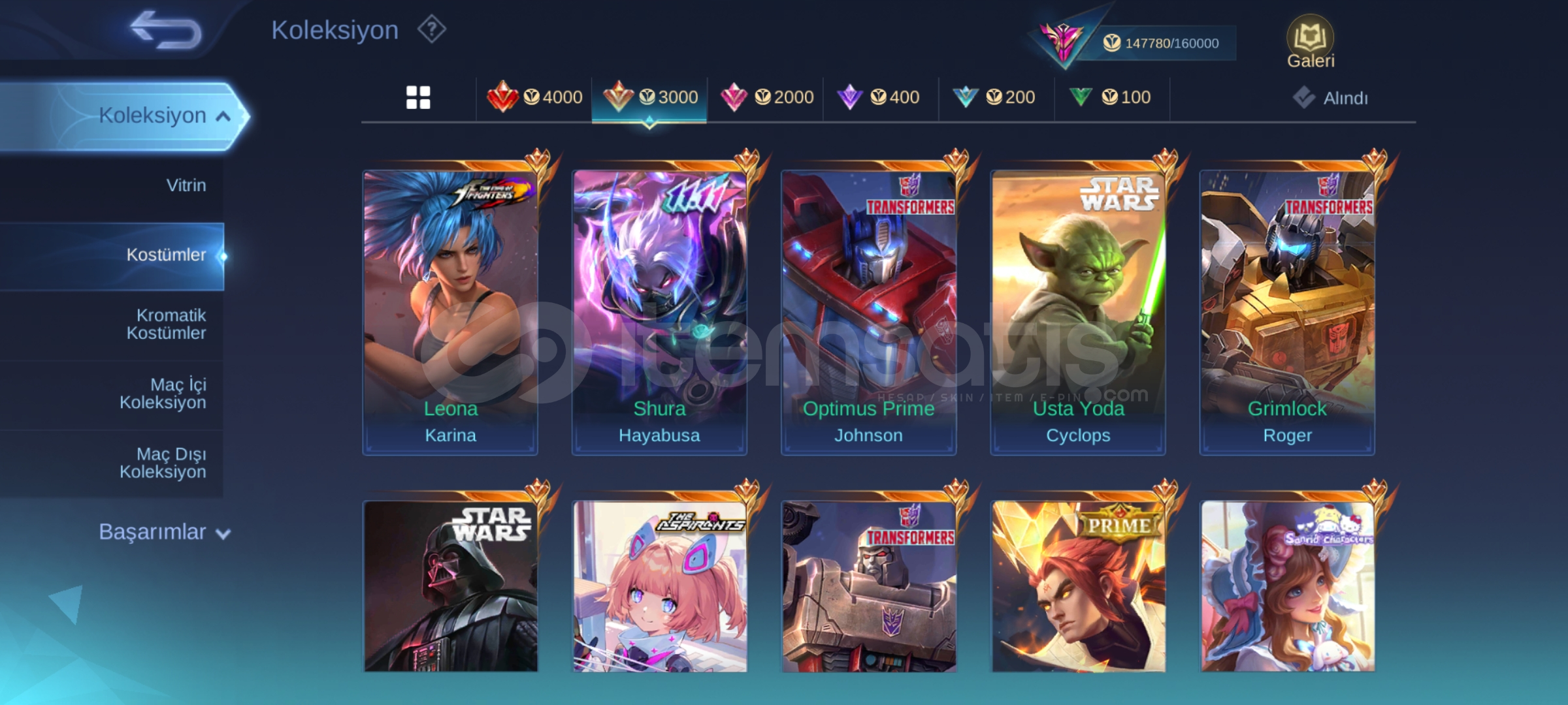 🔥 414 Skins 🔥 Legend Franco 🔥 Collector Lesley, Kufra 🔥 11.11 Hayabusa 🔥 StarWars Argus & Cyclops 🔥 Aspirant Angela 🔥 Transformers Johnson, Granger, Roger 🔥 Prime You Zhong 🔥 KoF Karina 🔥 Many Limited 🔥 8 Zodiak 🔥 Many Epic 🔥 Safe Account ✅