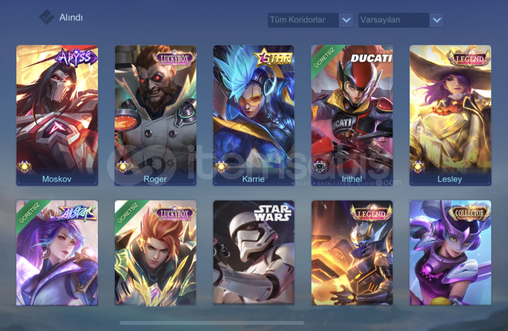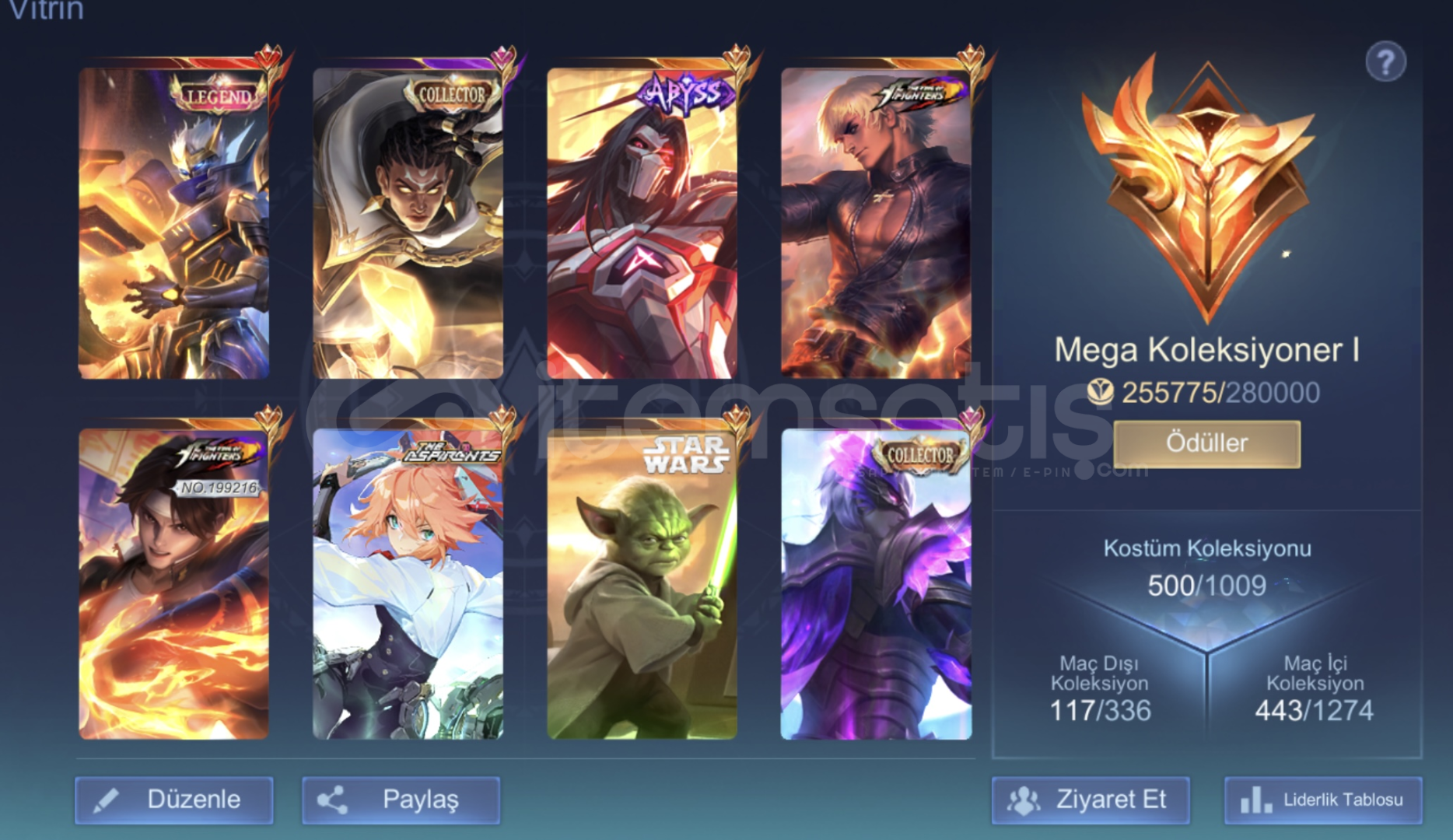 **LEGENDS STARWARS KOF COLLECTORLU DEĞERLİ 500 GLOBAL KOSTÜMLÜ HESAP**KİMMY STAR WARSCYCLOPS STAR WARSMOSKOV ABBYSMOSKOV ALL STARHANABİ ALL STARXAVİER JUJUTSU KAİSENMELİSSA JUJUTSU KAİSENYİN ATACK TİTANHARİTH HUNTER GRANGER LEGENDSSABER LEGENDSVALİR LEGENDSLESLEY LEGENDSMİA LEGENDSWANWAN COLLECTOR 11.11 GUSİON COLLECTORGRANGER COLLECTORALDOUS COLLECTORPOPUL COLLECTORNATAN COLLECTORLESLEY COLLECTORBRODY...