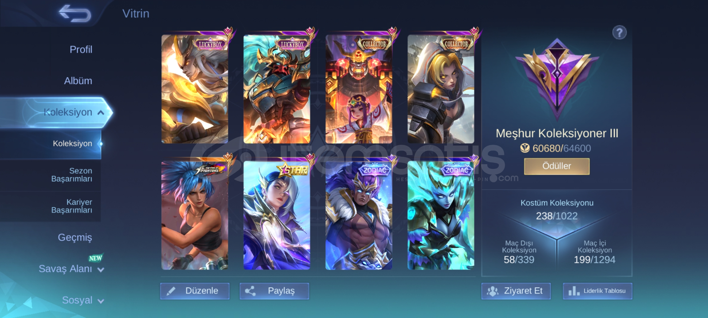 60 BİN KOLEKSİYON + YILDIZ ÜYELİK KARTI MEVCUT. İÇİNDE 300 ELMAS VAR