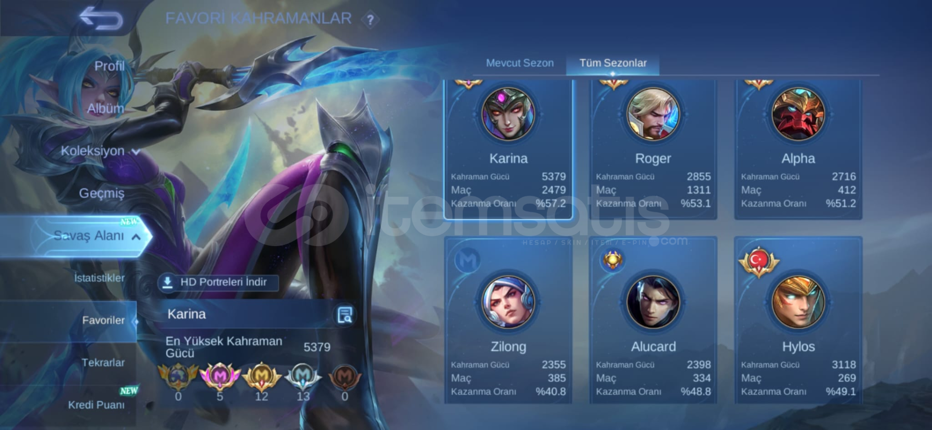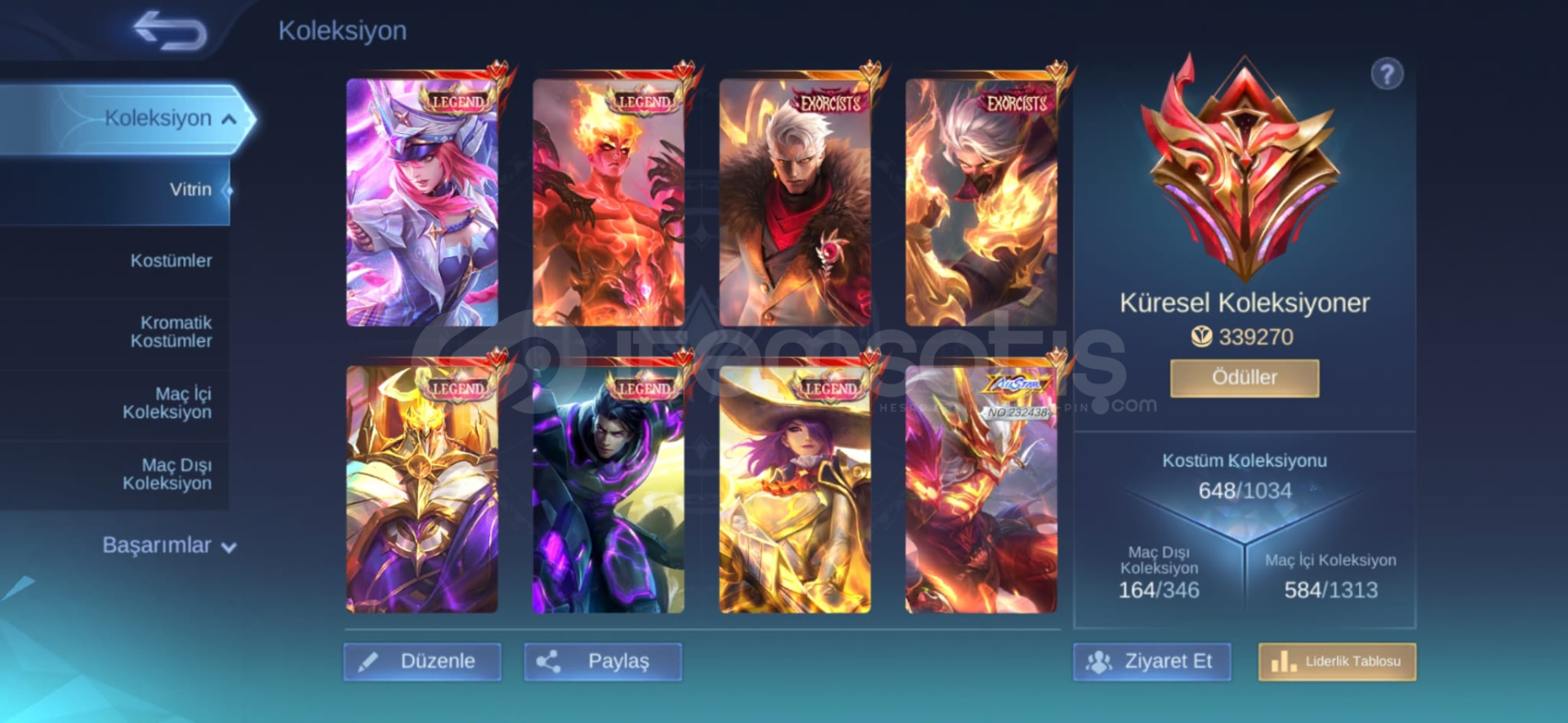 6 LEGENDS HESAP100000 ELMAS HARCANMIŞİNDİRİM İÇİN MESAJ ATMAYIN LÜTFEN