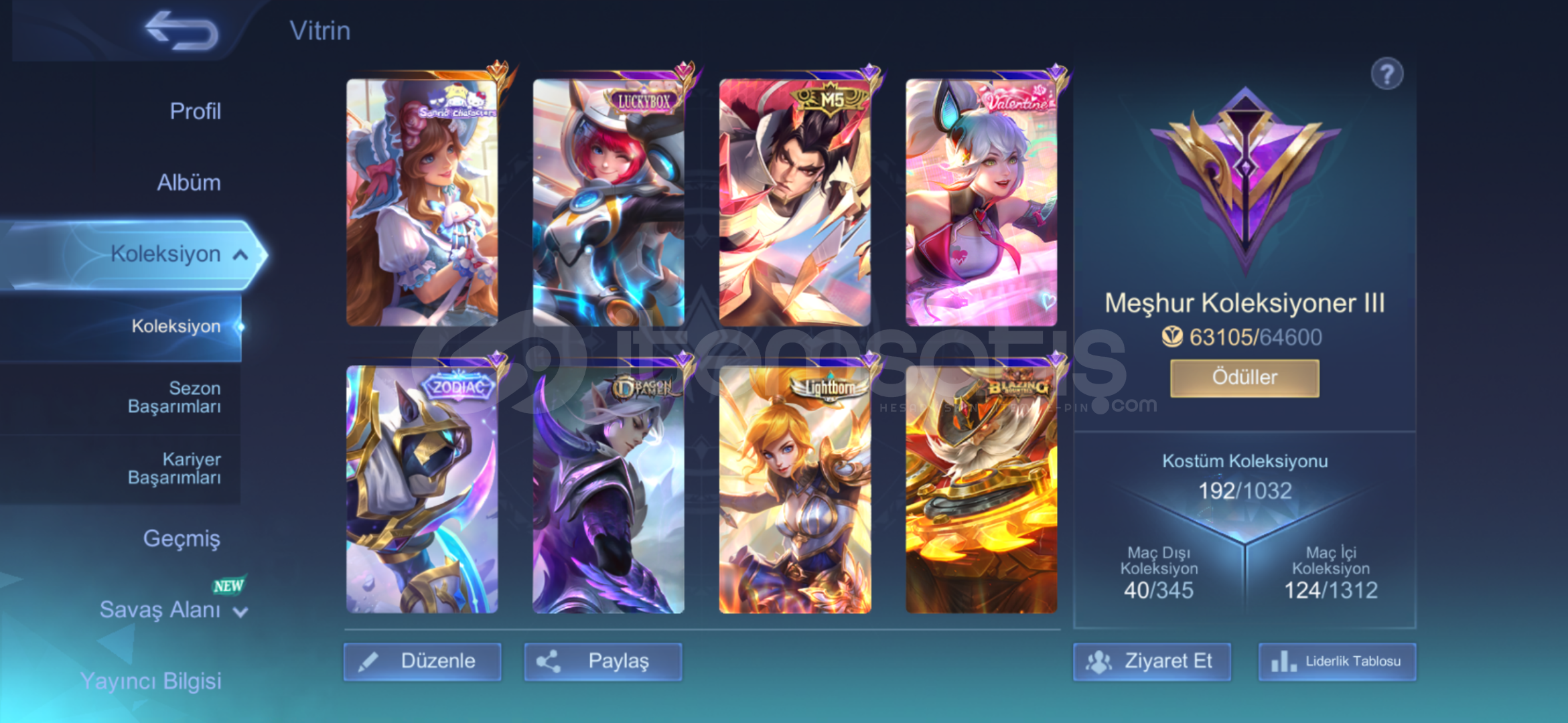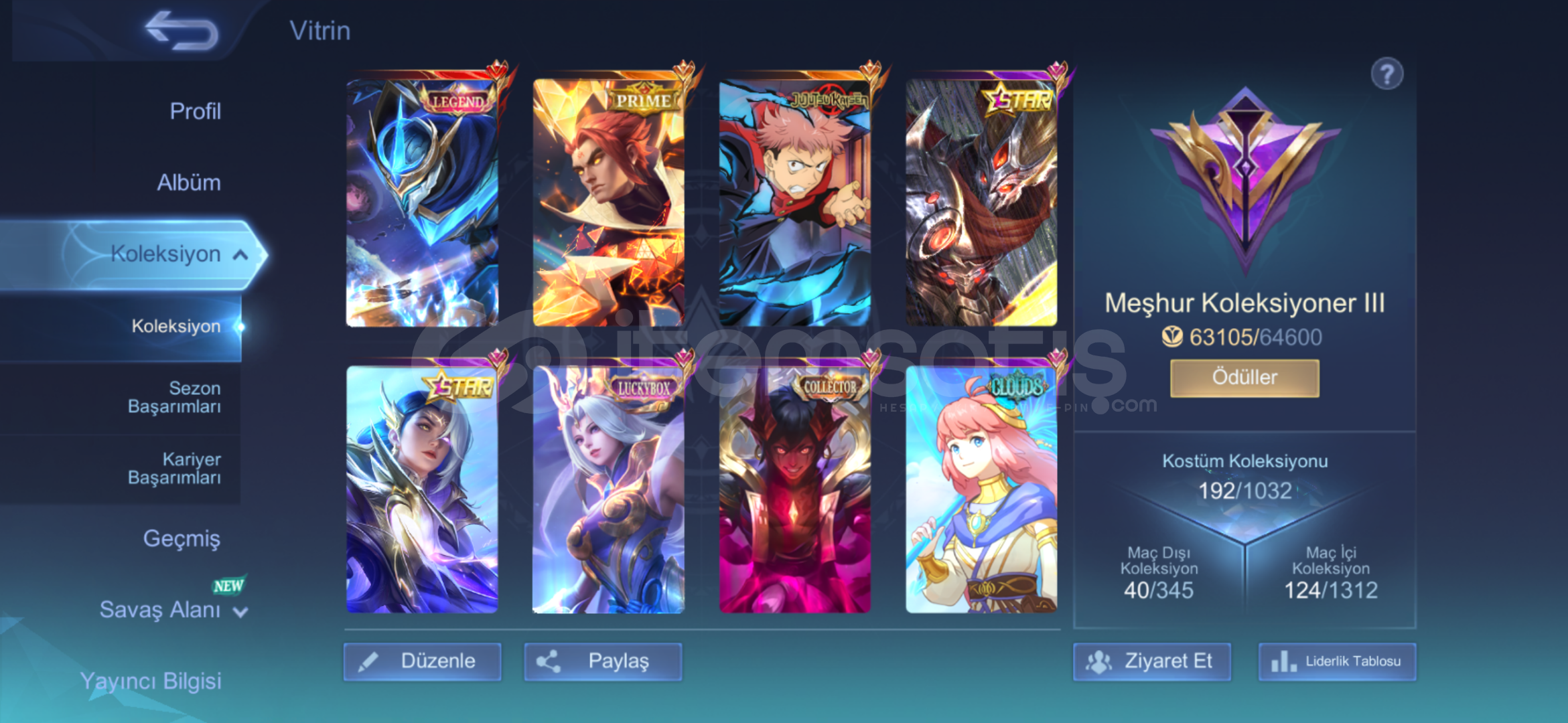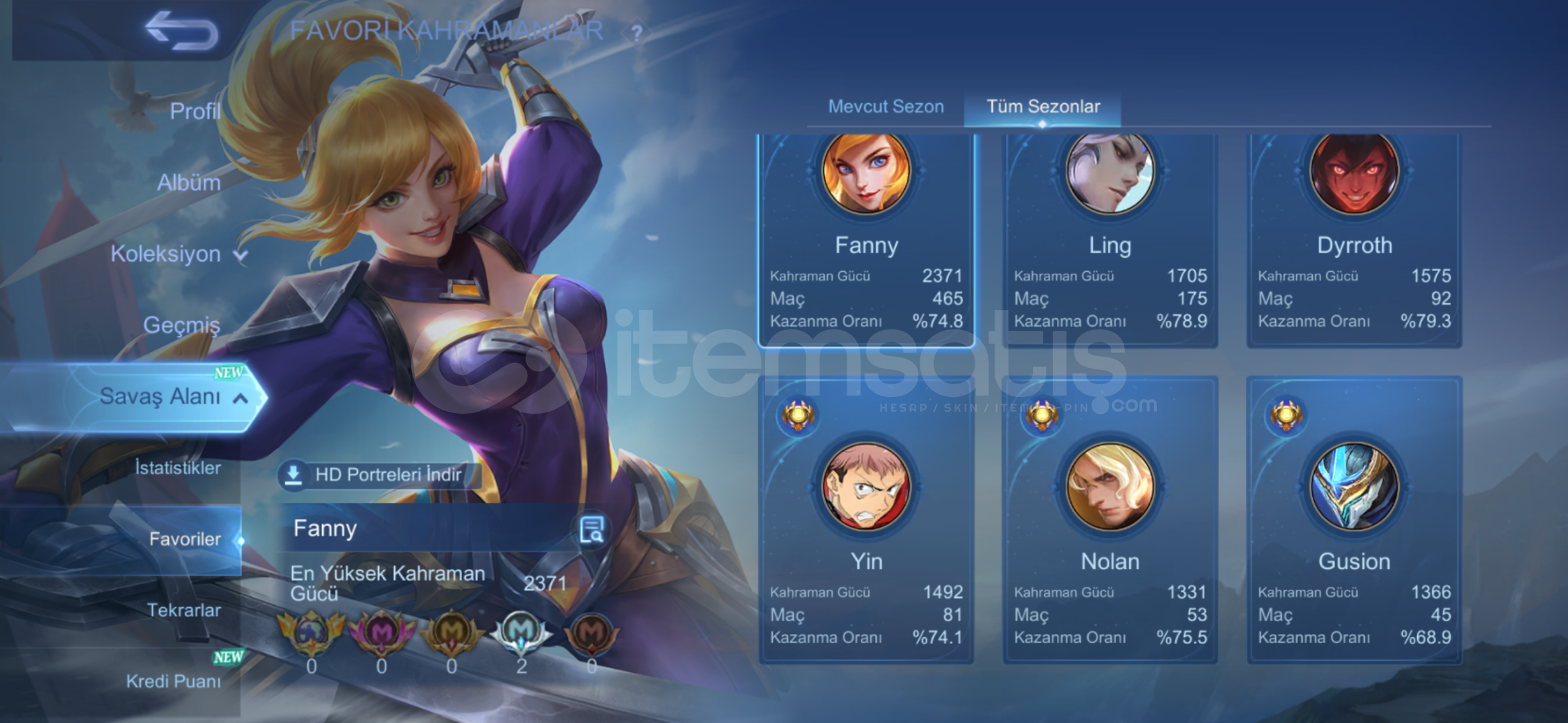 SİTENİN EN UYGUN ORANLI MEŞHUR 3 FIRSAT HESABI !FİYATININ EN İYİSİ!.HESAP TÜRKİYE SUNUCULUDUR..HESAPTA 196 ELMAS BULUNMAKTADIR..TEK BAĞ MOONTON MAİL DEĞİŞİMİ MEVCUT..GUSL LEGEND JJK YİN DYROTH COLLECTOR YZ PRİME SELENA FLAŞ HAYABUSA DENEY VE YAZAMADIĞIM BİR ÇOK ETKİNLİK VE ÖZEL KOSTÜM.70+ WİN RATE.EXO AOT VE JJK GİBİ DEĞERLİ BASELER ...