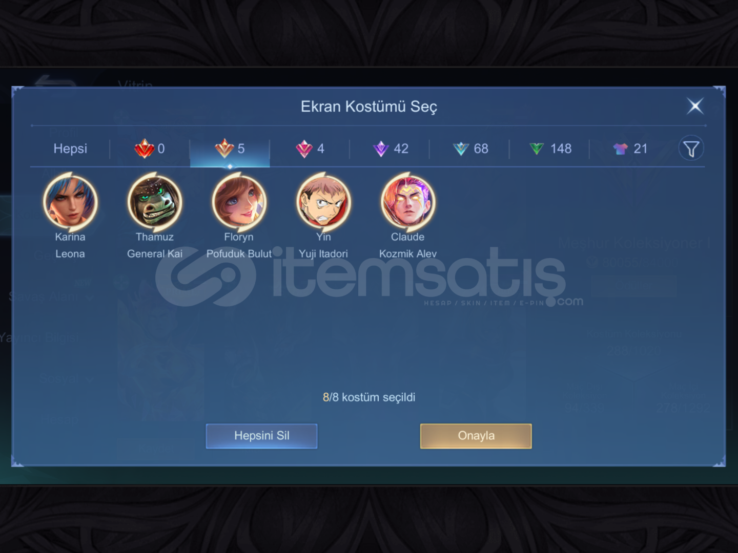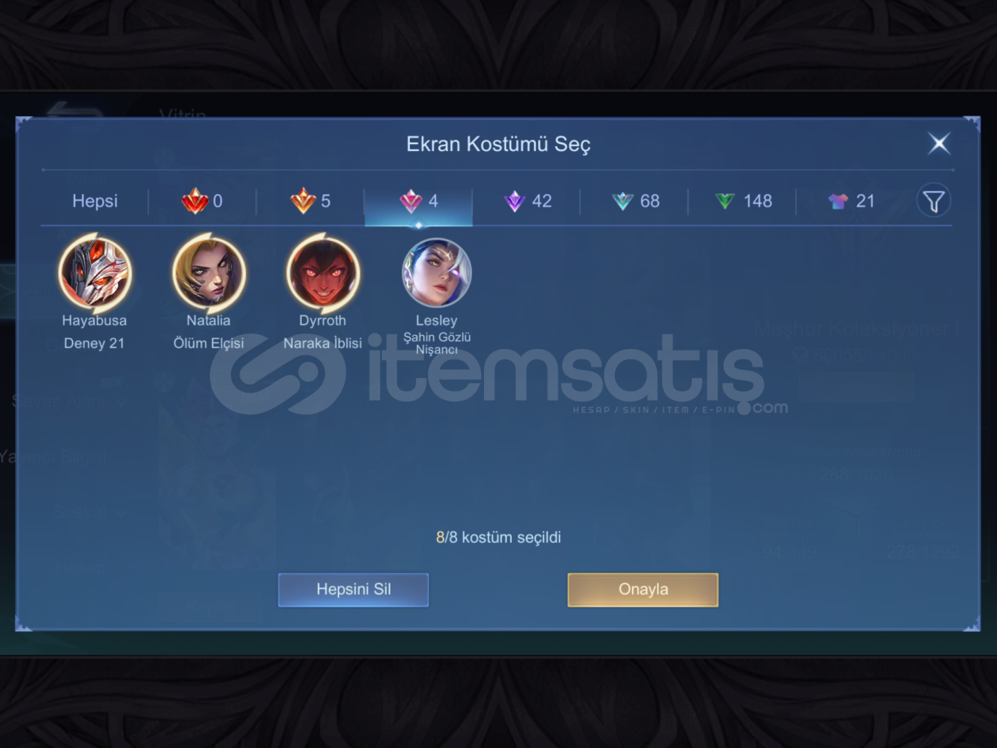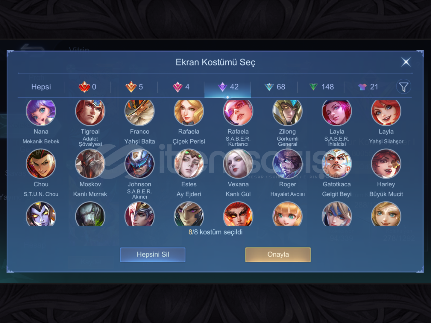 HİÇBİR BAĞLANTISI YOKTUR DİREK DEVREDİLECEKTİR FİYATTA PAZARLIK DÜŞÜNÜLEBİLİRJUJUTSU YİNCOLLECTOR DYRROTHKUNGU FU PANDA THAMMUZ COLLECTOR NATALİA PRİME CLOUDESTAR HAYABUSASTAR LESLEYKOF KARİNASABER: JHONSON, RAFAELA, LAYLASTUN CHOUYAHŞİ BALTA FRANCO YAHŞİ SİLAHŞOR LAYLAVENOM: GROCK, GUSION, DYRROTHLIGHTBORN TİGREAL LIGHTBORN HARITH MYTH 2024 CLINT, MYTH 2023 FARAMISEP...