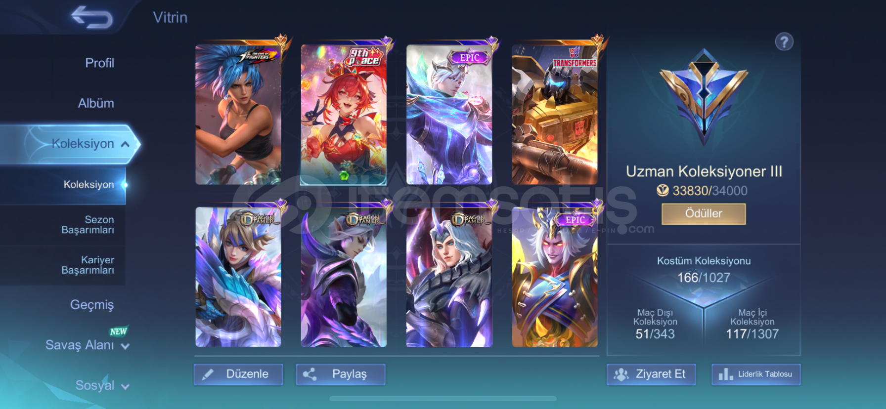 170 kostüm96 kahraman (65k para bıraktım hesabı alıcak kişi istediği maini alabilir)amblemler full+en fazla mistik 22 olmuş mevcut mistik59 levelgus mainlik hesap60 avatar çerçevesi var