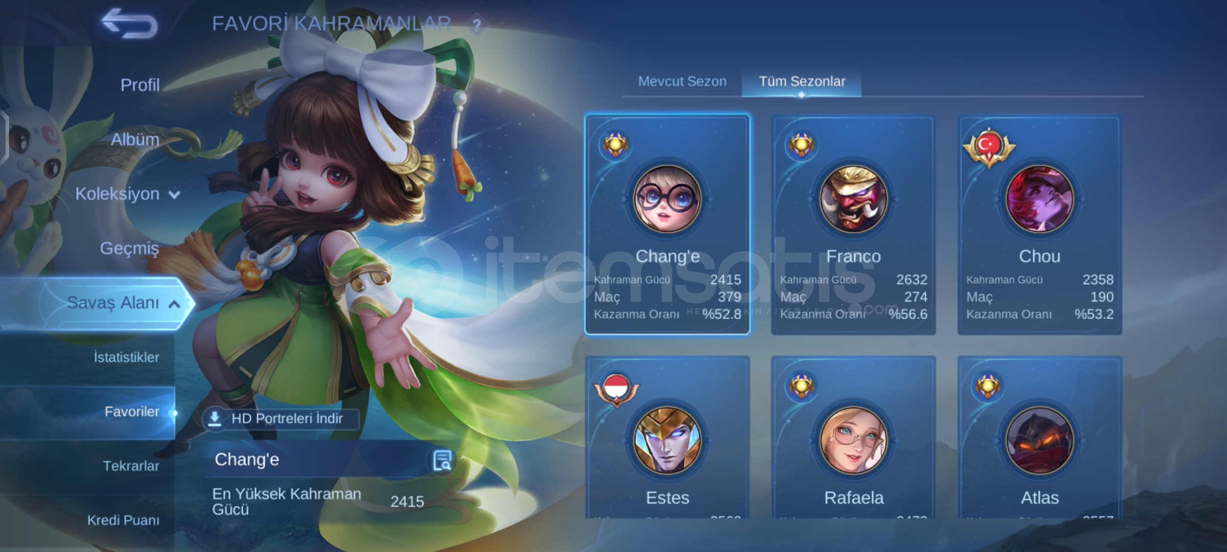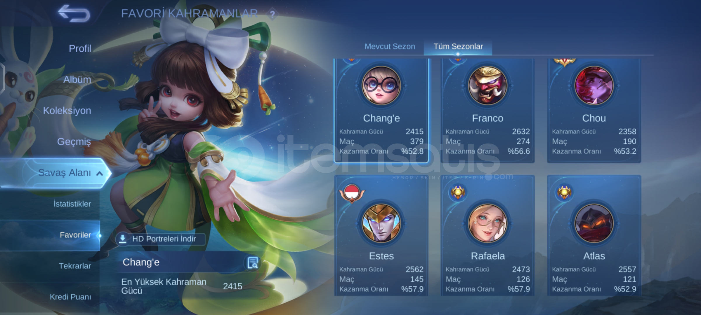 🔎Saygın 1 mega gibi dolu •Adc exp ağırlıklı•Franco legendli•Glo id sorunsuz•Az maç rahat kasmalık