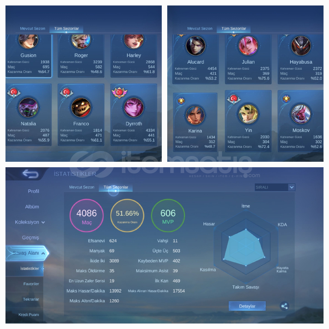 Hesap resimdeki gibidir. Tek bağ moonton. Moonton'a bağlı gmail devri ile teslim edilir. TR temiz hesap>HAFTASONU ÖZEL STOK ERİTİYORUZ!