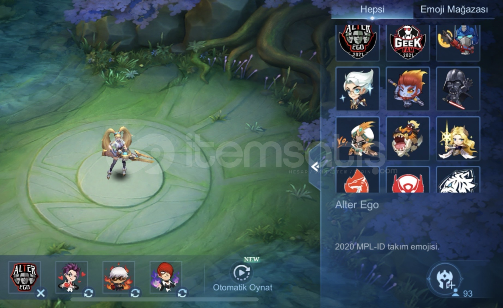 bu fiyata daha ucuzu bulunmaz daha cok jungle main hesap kof karina falan var isteyene detayli atarim amblemleri full ve emojiler cok nadir emojiler alter ego emojisi nadir bir emoji