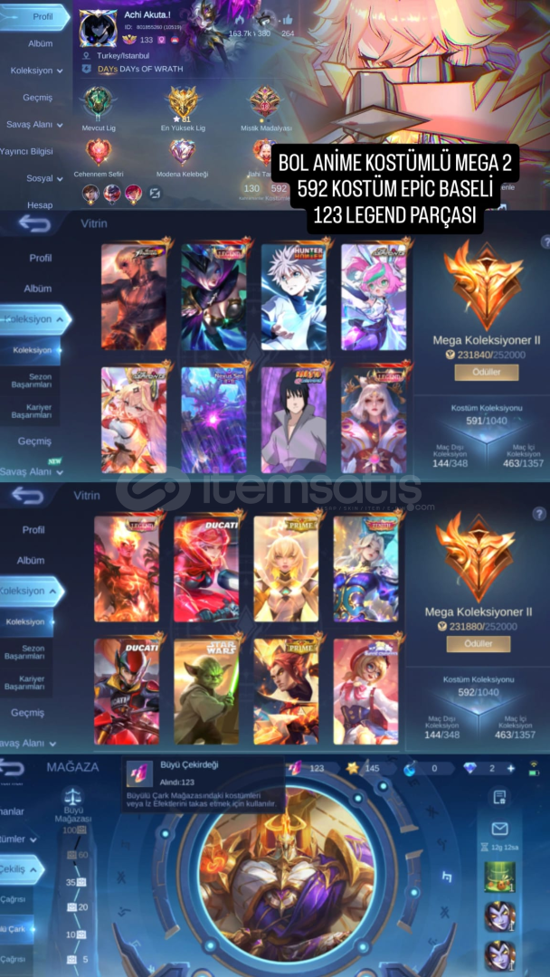 *BOL ANİME KOSTÜMLÜ MEGA 2**592 KOSTÜM EPİC BASELİ**123 LEGEND PARÇASI*TEK BAĞ MOONTON 3. TARAF BAĞ BULUNMAZ CİHAZ YÖNETİMİ TERTEMİZ HESAPTIR ALICISINA HAYIRLI OLSUN