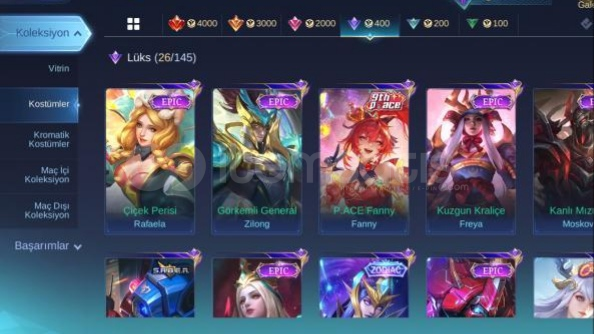 Hesap epik seviyesinde ama bolve güzel kostümler bulunur artı olarak starlight ta 3k parca bulunur
