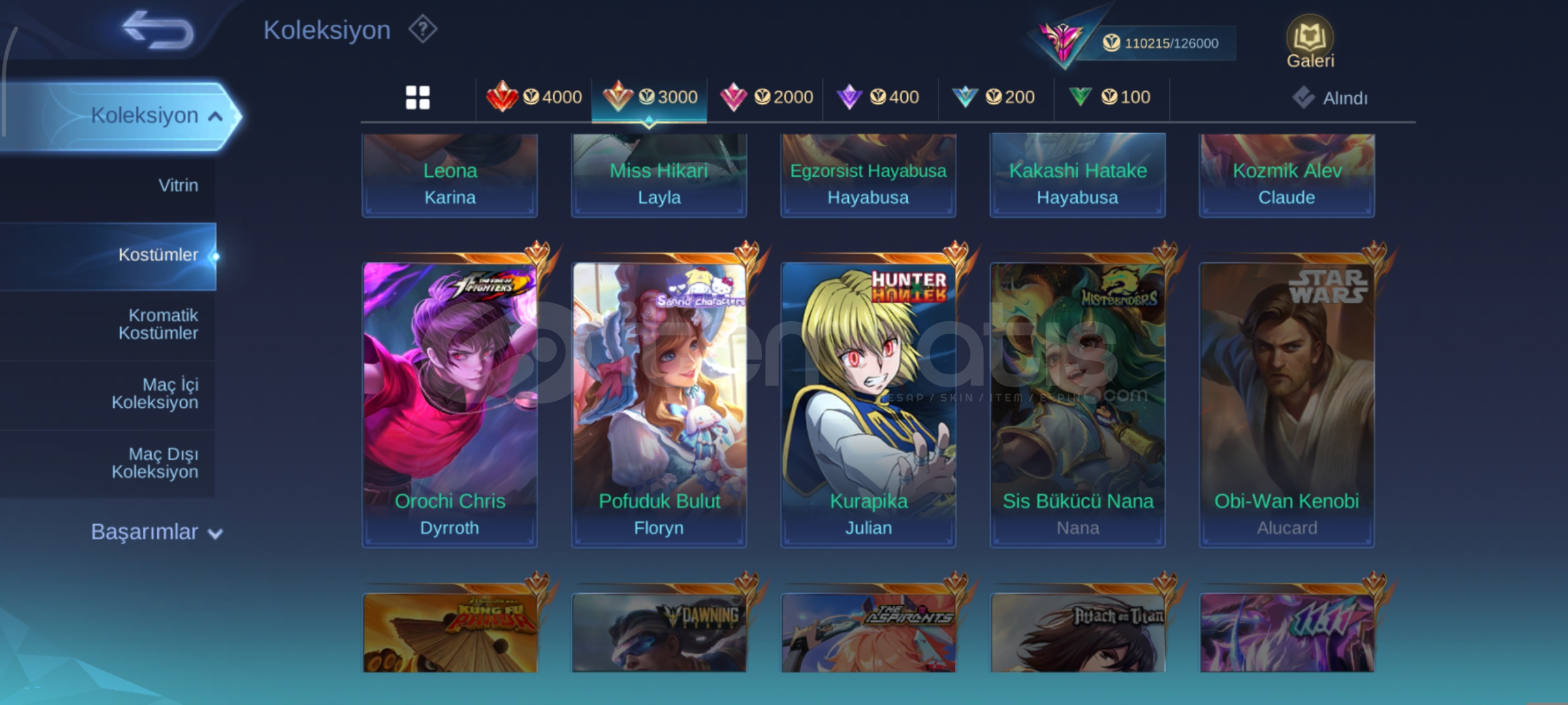 İÇİNDEKİLERHAYABUSA- KAKASHIHAYABUSA- EXORCISTGUSİON-(LEGEND)JULİAN-(KURABİKA) (HXH)Dyrroth-NARAKA İBLİSİ (COLLECTOR)CLOUDE(PRİME) EPİC BASEVE DAHA FAZLASI