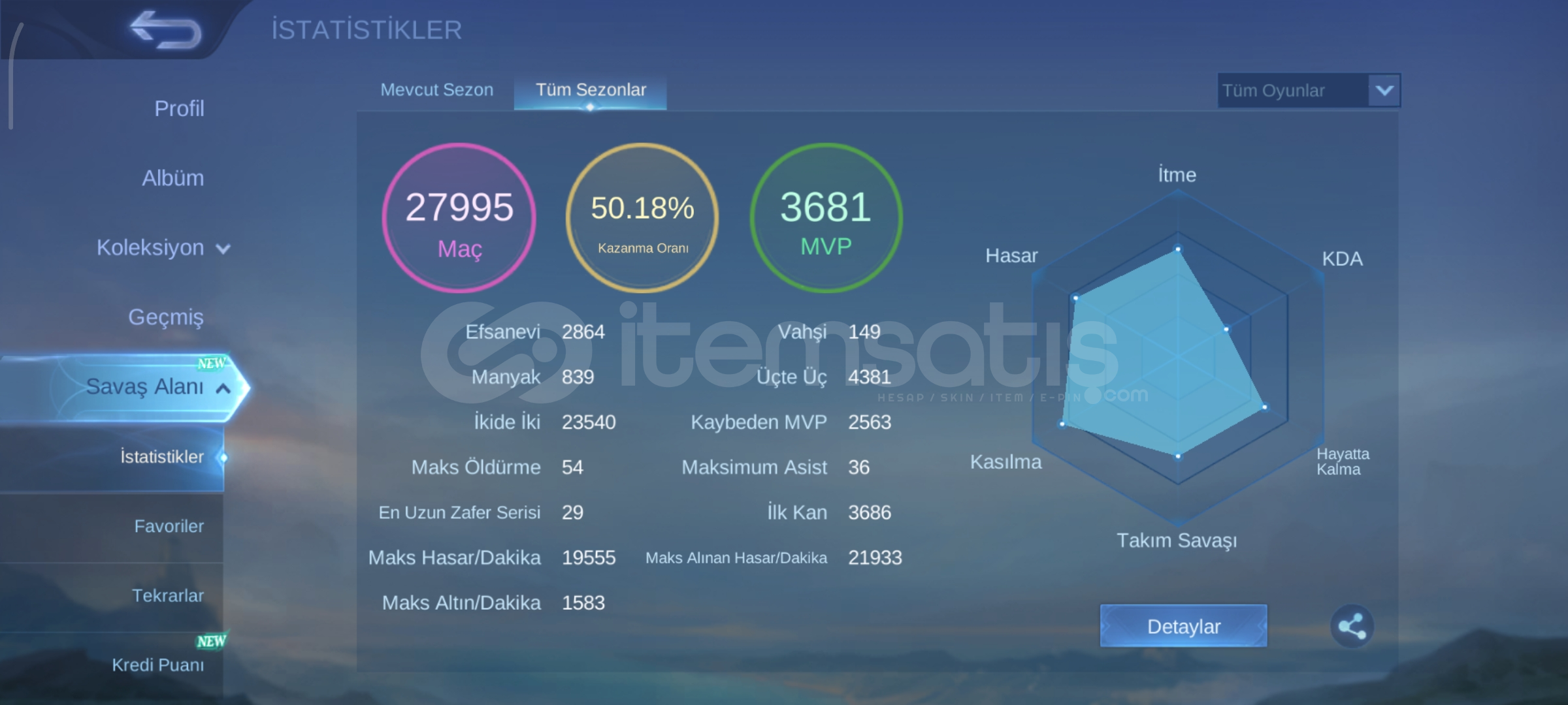 ⭐DERECELİ HAZIR 10 WIN⭐ TR 50K+ M. ÖZ 30 LVL
