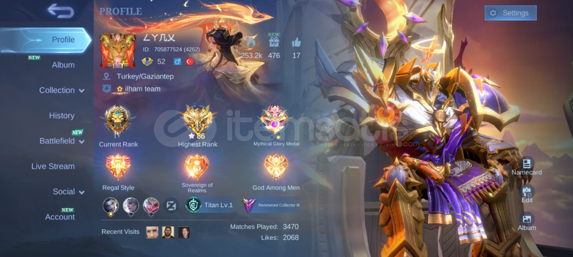 Hesaba yaklaşık 6000 TL ye yakın elmas yüklenmiştir. hesapta khufra oynanmıştır. Tank mainli hesaptır. Hesabın geri çekilmesi söz konusu değildir şahsi hesabımdır. Hesabin butun detaylari degisecektir. Herhangi bir şüpheniz olursa şahsi olarak bana özelden soru sorabilirsiniz.