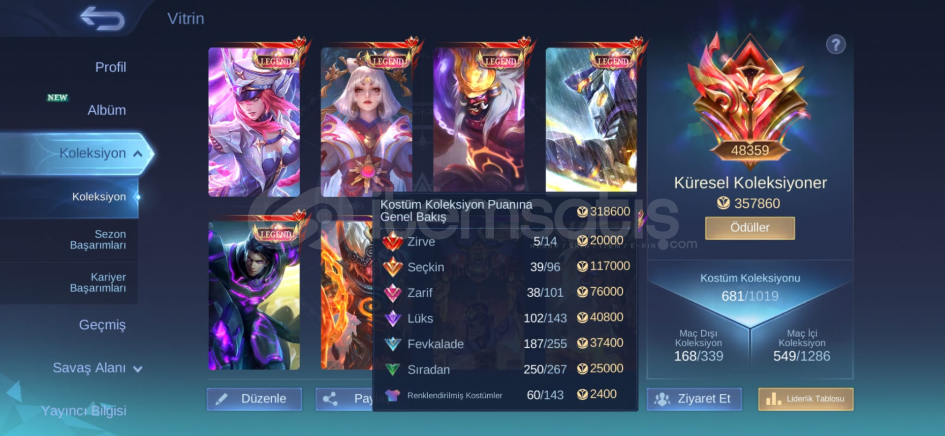 BÜTÜN HEROLAR ACİK +FULL LEGEND KOSTÜM