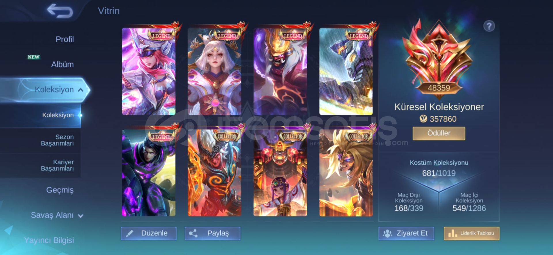 Bütün HEROLAR açık LEGEND kostümler +18 k maç exp main
