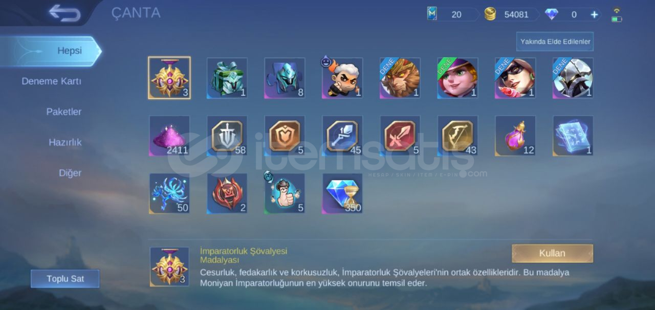 AKTİF OLMADAN LÜTFEN SATIN ALMAYINIZ MESAJ'LA TEYİT EDİNİZ!!Satın aldığınızda Eposta ve Moonton hesabı ile teslim edilecektir.İade kesinlikle yoktur. Değişim için de video kaydı mutlaka olmalıdır. Art niyetli alıcılar yüzünden siparişi başından beri video kaydı almanız önerilir herhangi bir sorun çıktığında video kanıtsı...