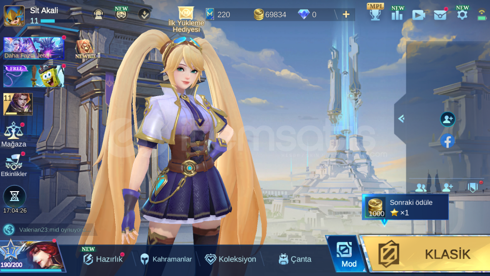 Mail ve şifresi ve oyunun içinde şifresi verilcektir.