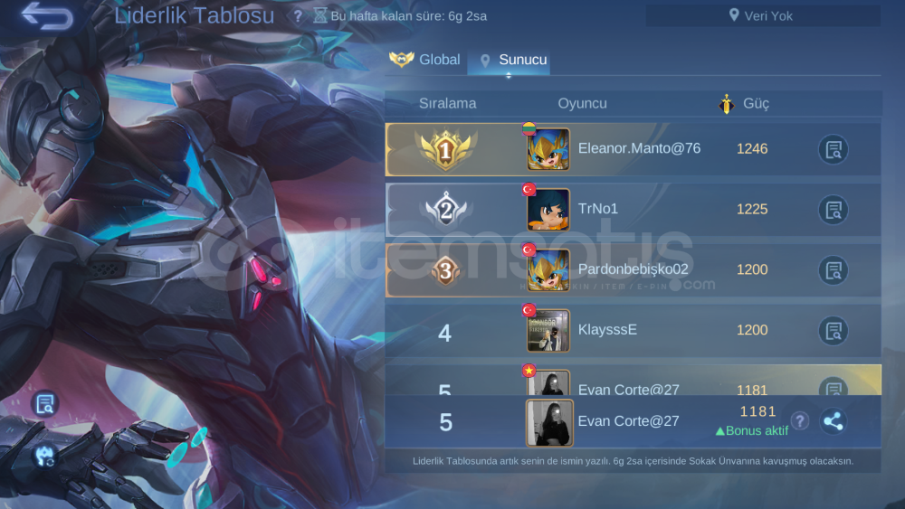 Alpha karakteriyle sunucuda 5. sıradadır bugün itibariyledir.