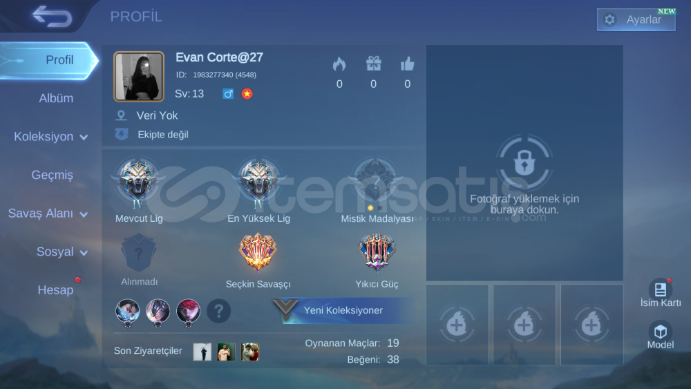 Hesaplar moontona bağlıdır.Alpha karakteriyle sunucuda 5. sıradadır bugün itibariyledir.Bayrak ve İsim değişir.Mail ve şifresi ve oyunun içinde şifresi verilcektir.Fotoğrafta gösterdim.57000 civarı savaş parası vardır.Alana hayırlı olsun.Hesabın mailinde gereksiz eposta bölümüne kodu gelebilir orayada bakın gelmezse.Amblemler resimde.905 bilet vardır.HESABA Hİ&...