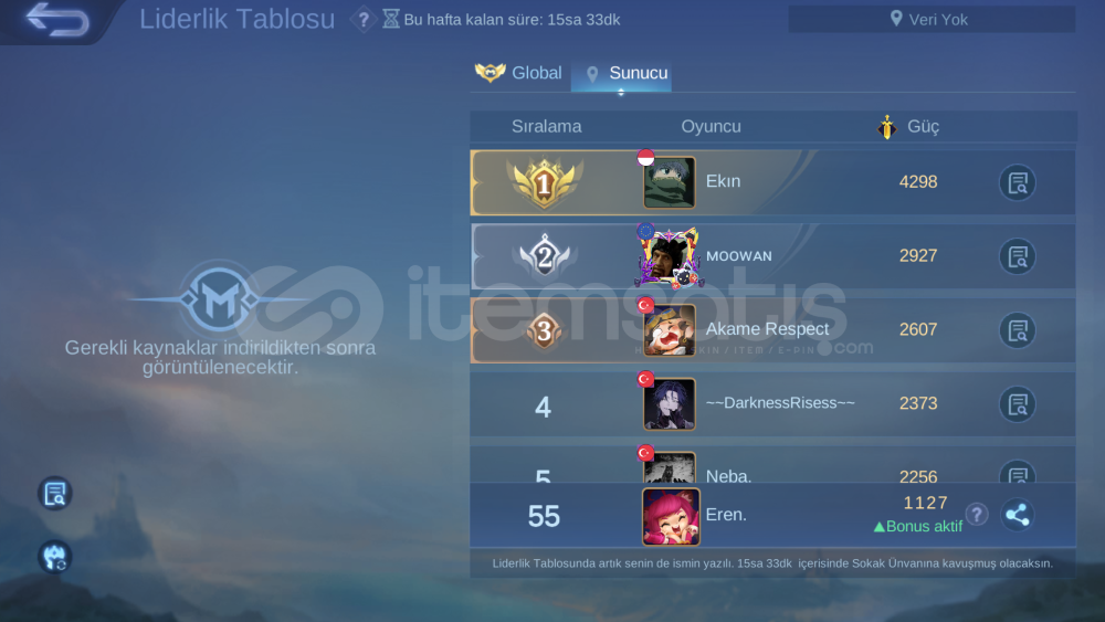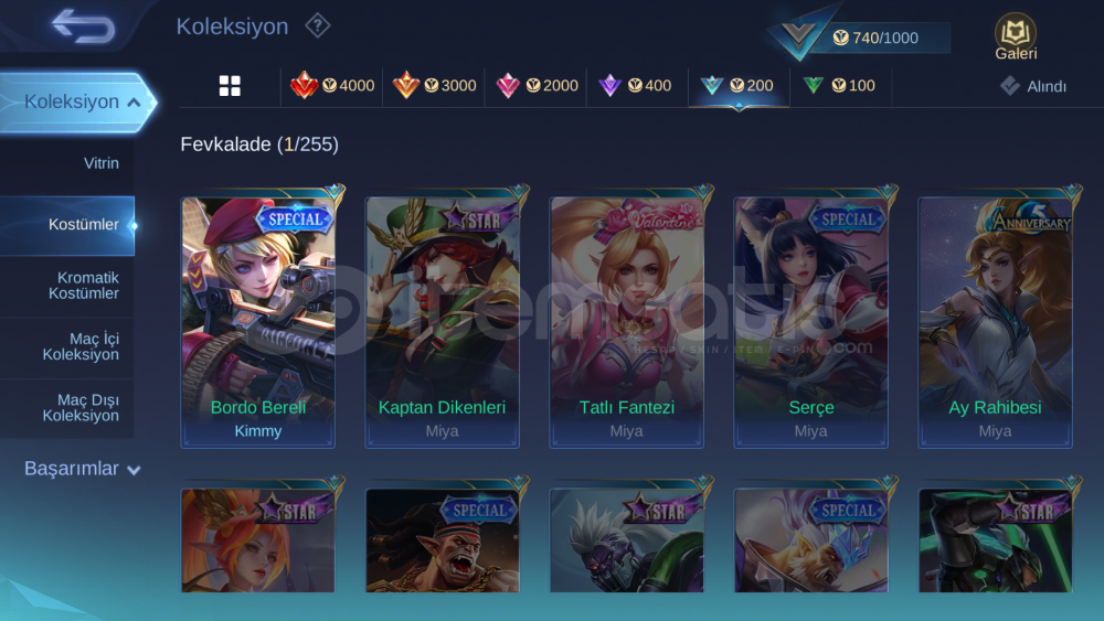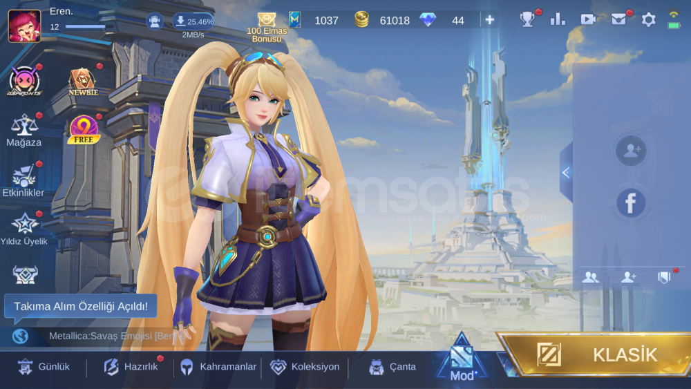 Hesaplar moontona bağlıdır.Kimmy karakteriyle sunucuda 55. sıradadır bugün itibariyledir.Bayrak ve İsim değişir.Mail ve şifresi ve oyunun içinde şifresi verilcektir.Fotoğrafta gösterdim.61000 civarı savaş parası vardır.Alana hayırlı olsun.Hesabın mailinde gereksiz eposta bölümüne kodu gelebilir orayada bakın gelmezse.Amblemler resimde.1037 bilet vardır.