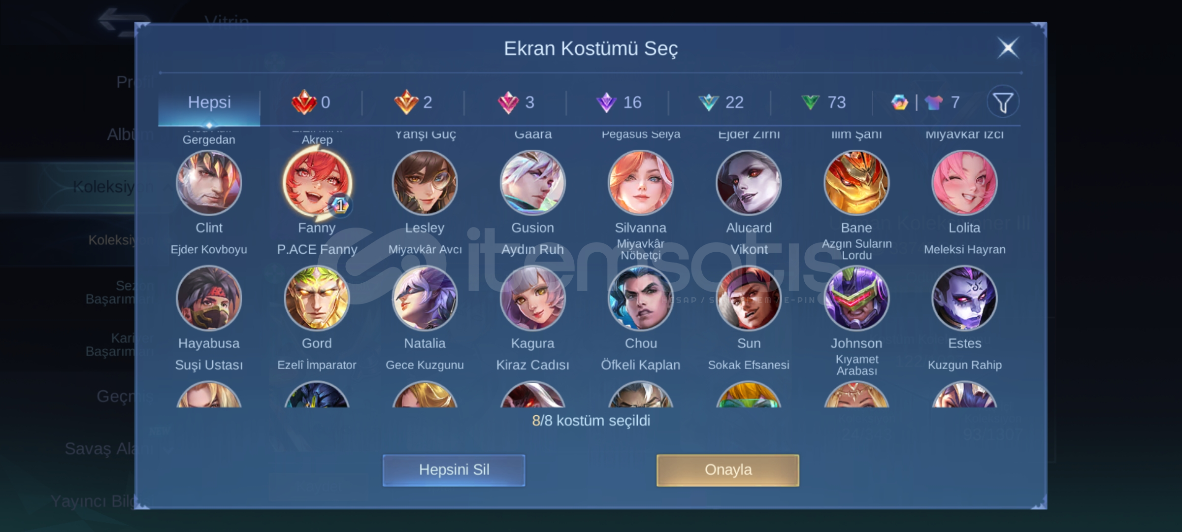 2 KOF -> Chou ve Karina3 Lucky Box -> Alucard, Zilong ve Rogerve tüm miyavkar kostümlerihesapta yıldız üyelik vardır hesabın bağları temizdir tek bağ moonton fakat hesapta güvenli cihaz koruması mevcut bu yüzden e posta şifresiyle birlikte verilecektir dilerseniz süresi bittikten sonra e posta değişimi yapabilirsiniz. Hesabın ve güvenliğinin garantisini veriyorum.