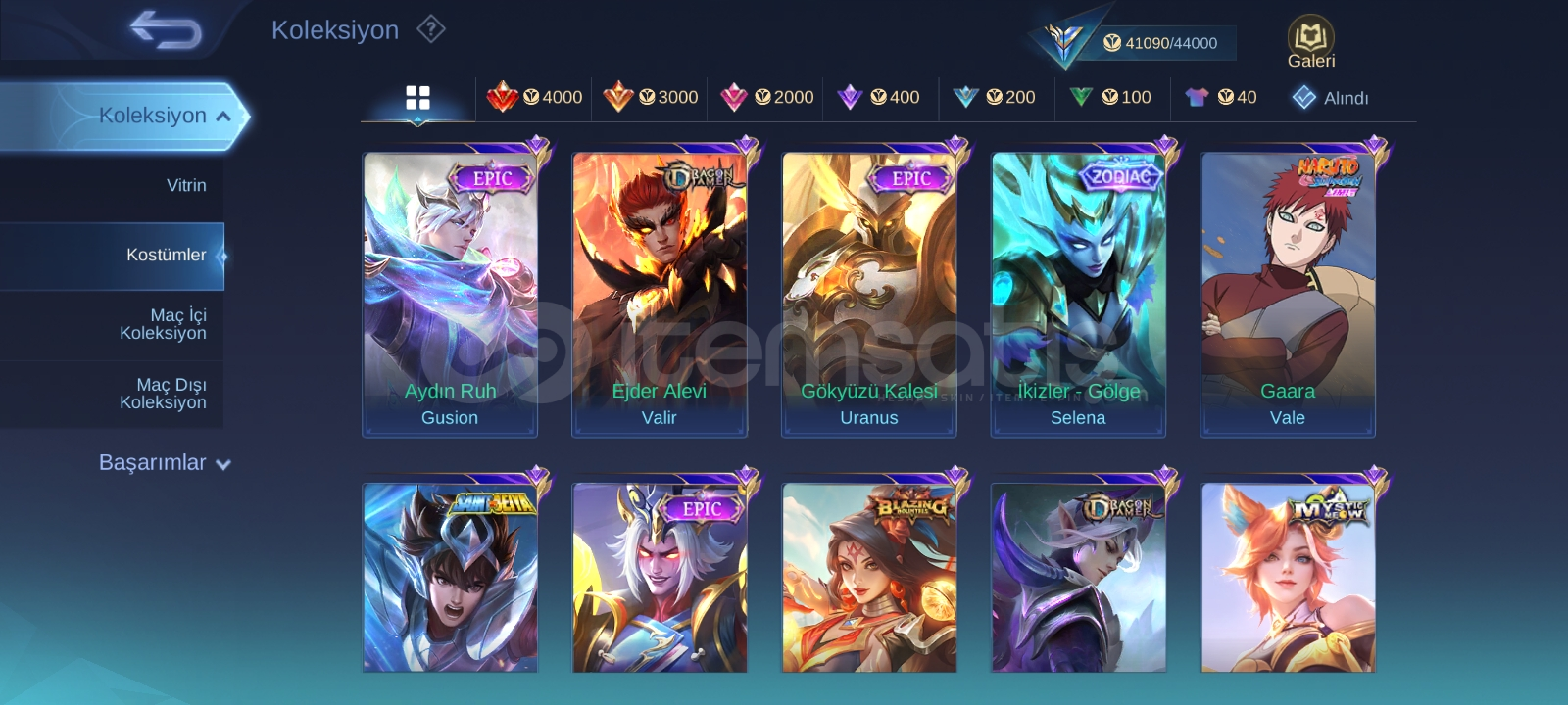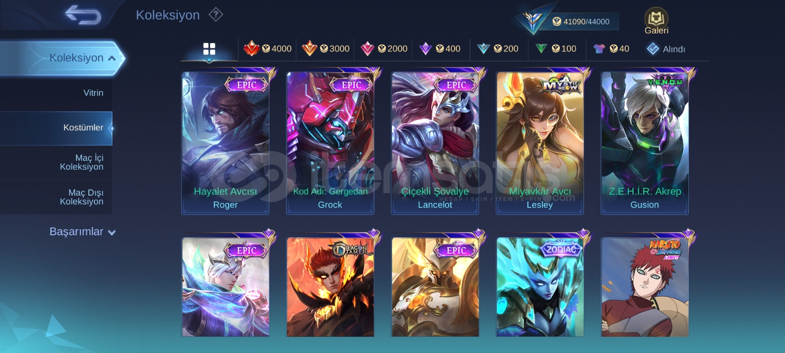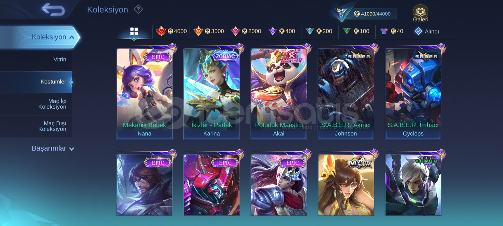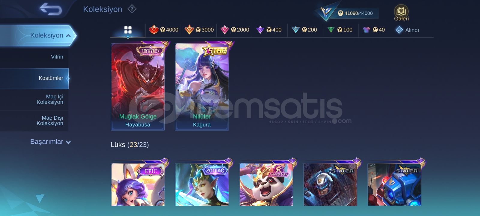 92 karakter açık oranlar makul düzeyde 41k koleksiyoner puanı var amblemler full 2si haric